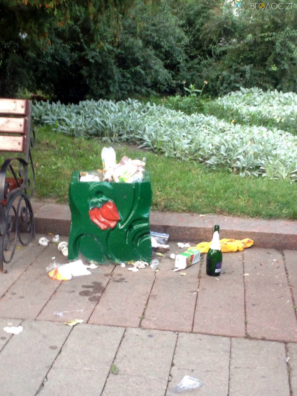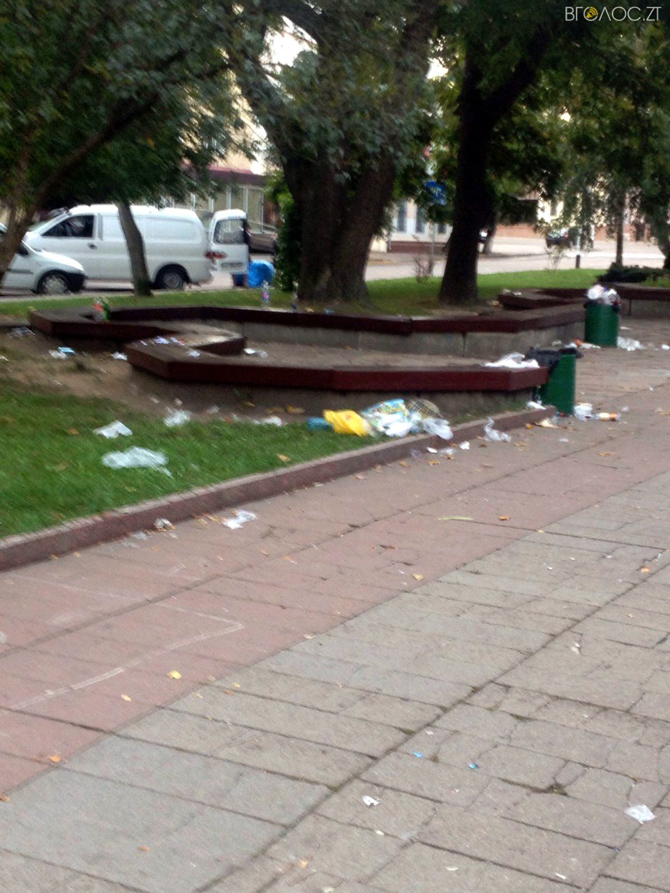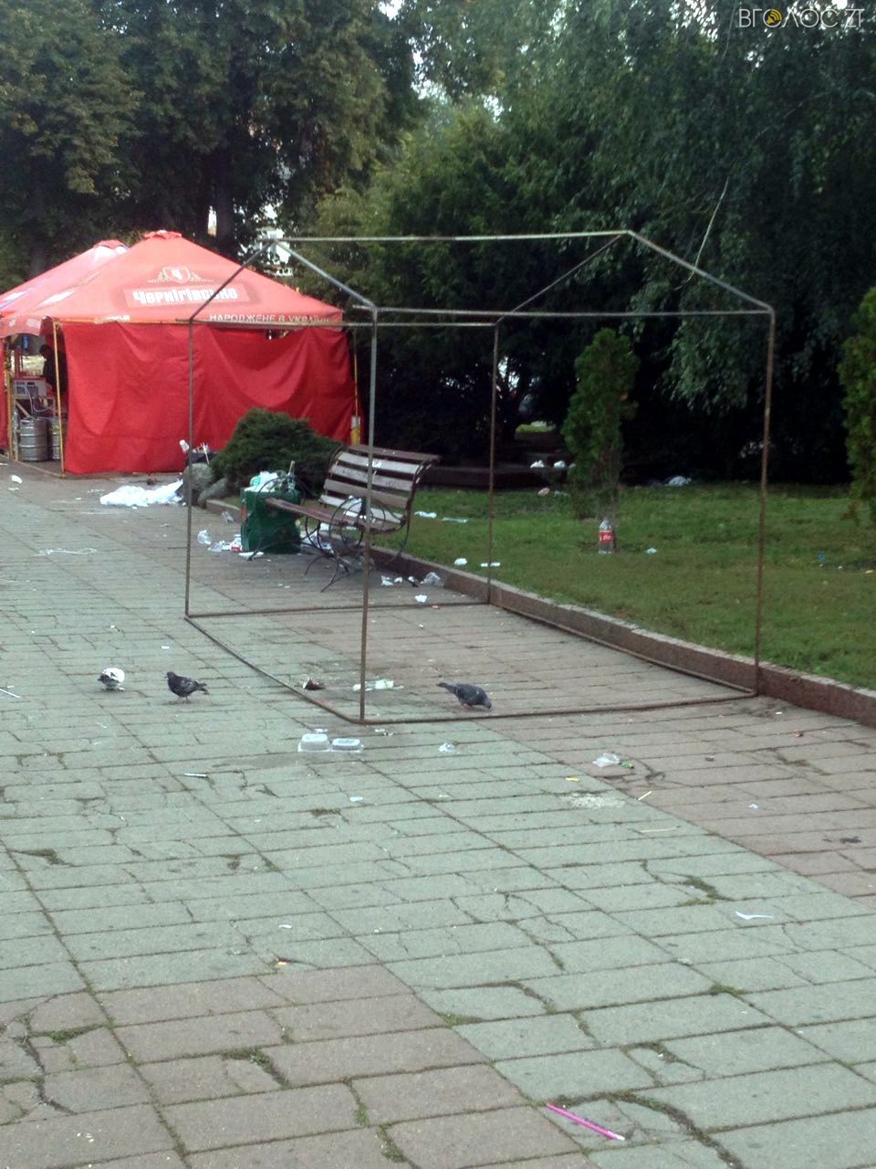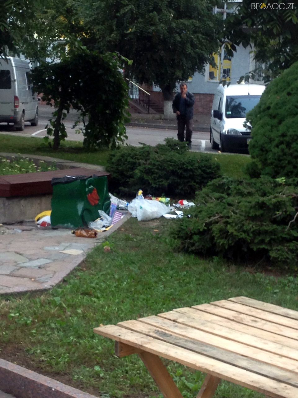 Другий день у Житомирі тривають заходи з нагоди Дня міста. Городяни та гості міста відпочивають, слухають концерти і… смітять. Зранку, 10 вересня, центр міста потопає у пляшках, пакетах, недопалках, обгортках та іншому смітті.