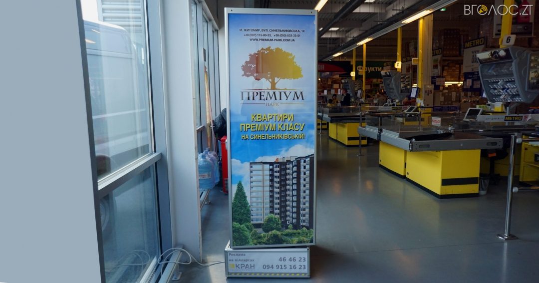 Пілларси розміщені всередині приміщень, а реклама на цих конструкціях є відносно новою послугою в Житомирі. Послугу з розміщення реклами на пілларсах пропонує рекламна агенція «Кран», котра являється оператором реклами в Житомирі. На сьогодні, встановлено 30 конструкцій в Житомирі та 2 – в Бердичеві.