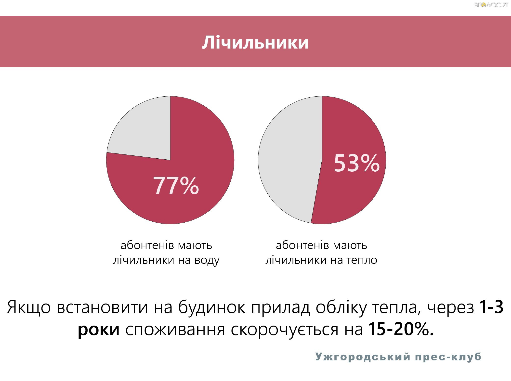 Закон “Про комерційний облік комунальних послуг” зобов’язує із 1 січня 2018 року у всіх житлових будинках встановити лічильники на газ, електроенергію і воду (будівлі, не обладнані лічильниками, не будуть підключатися до мереж); вводить пеню на борги за компослуги. За даними проведеного аналізу Держенергоефективності, якщо встановити на будинок прилад обліку тепла, через 1-3 роки споживання скорочується на 15-20%, у результаті мешканці платять за комуналку менше. Наразі в Україні лічильник на воду встановлені приблизно у 77% абонентів, а на тепло – 53%. Така ситуація дуже обмежує контроль за споживанням ресурсів та значно ускладнює економію.
