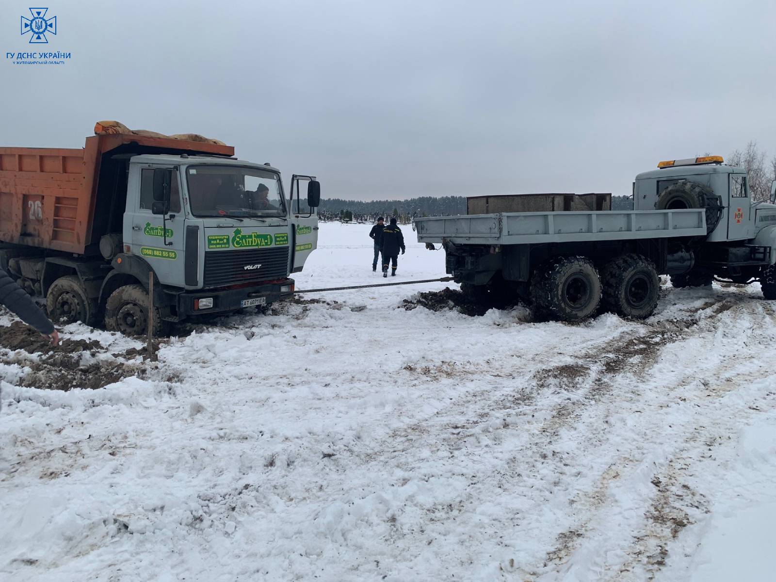 Протягом доби 6 грудня рятувальники Житомирщини вивільняли із заметів вантажні автомобілі у Житомирському та Коростенському районах.
