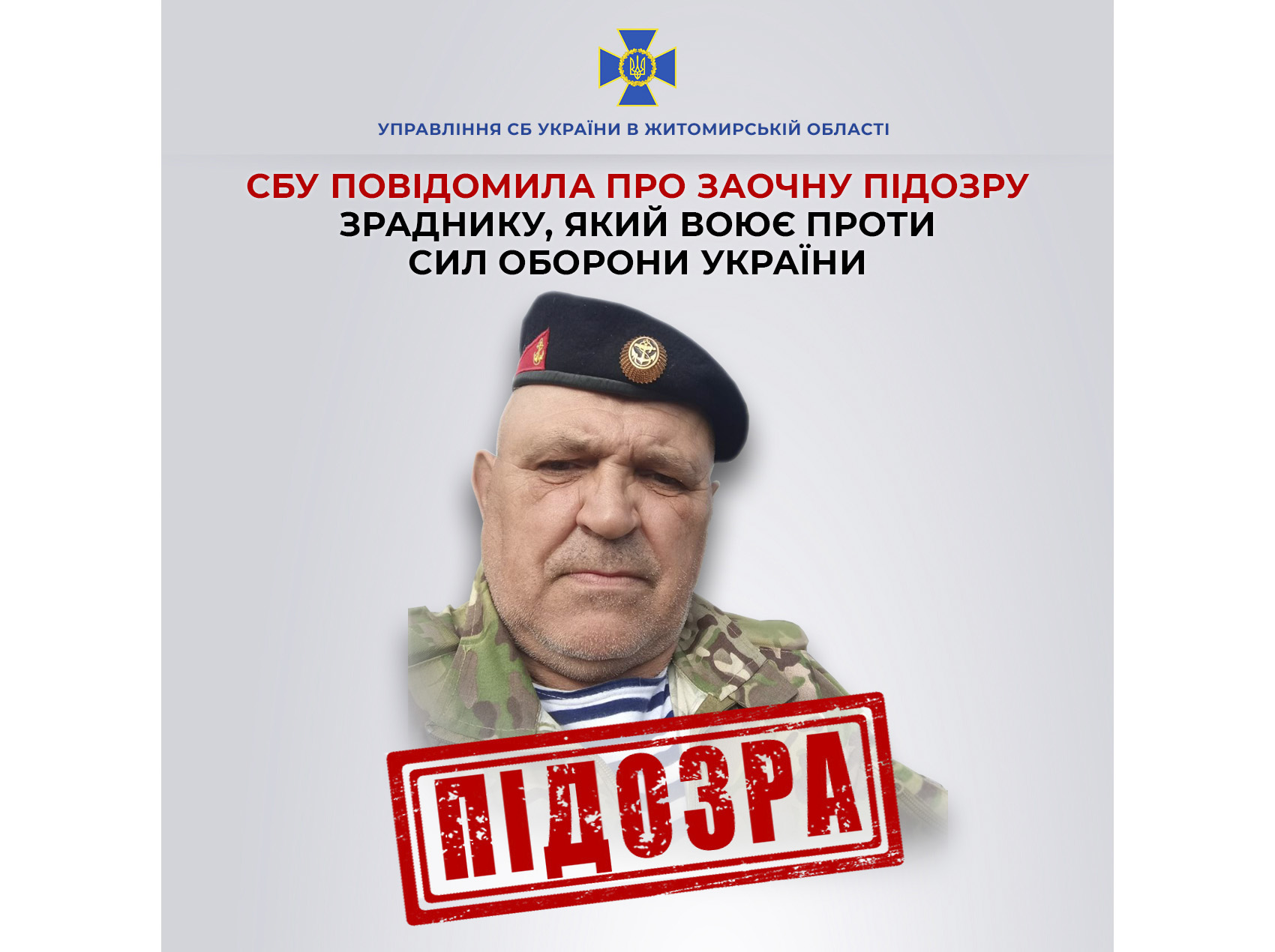 Кіберфахівці та слідчі Служби безпеки Житомирщини зібрали доказову базу на чергового зрадника, який воює проти Сил оборони України на східному фронті.