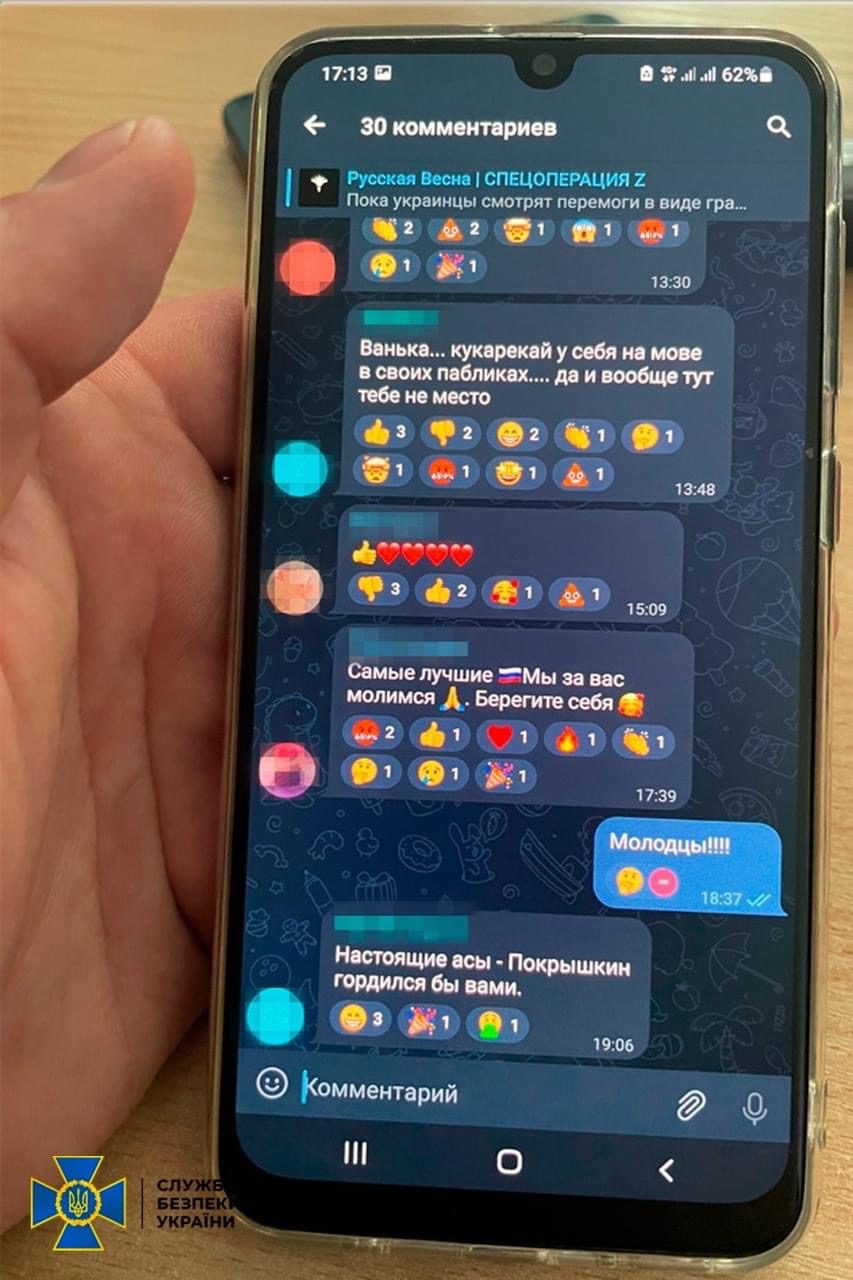 Окрім того, правоохоронці задокументували оприлюднення затриманим схвальних коментарів щодо ворожих ракетних ударів по українських містах. Особливо він «відзначав» повітряні атаки на об’єкти енергетики та соціальні установи, зокрема школи та лікарні.