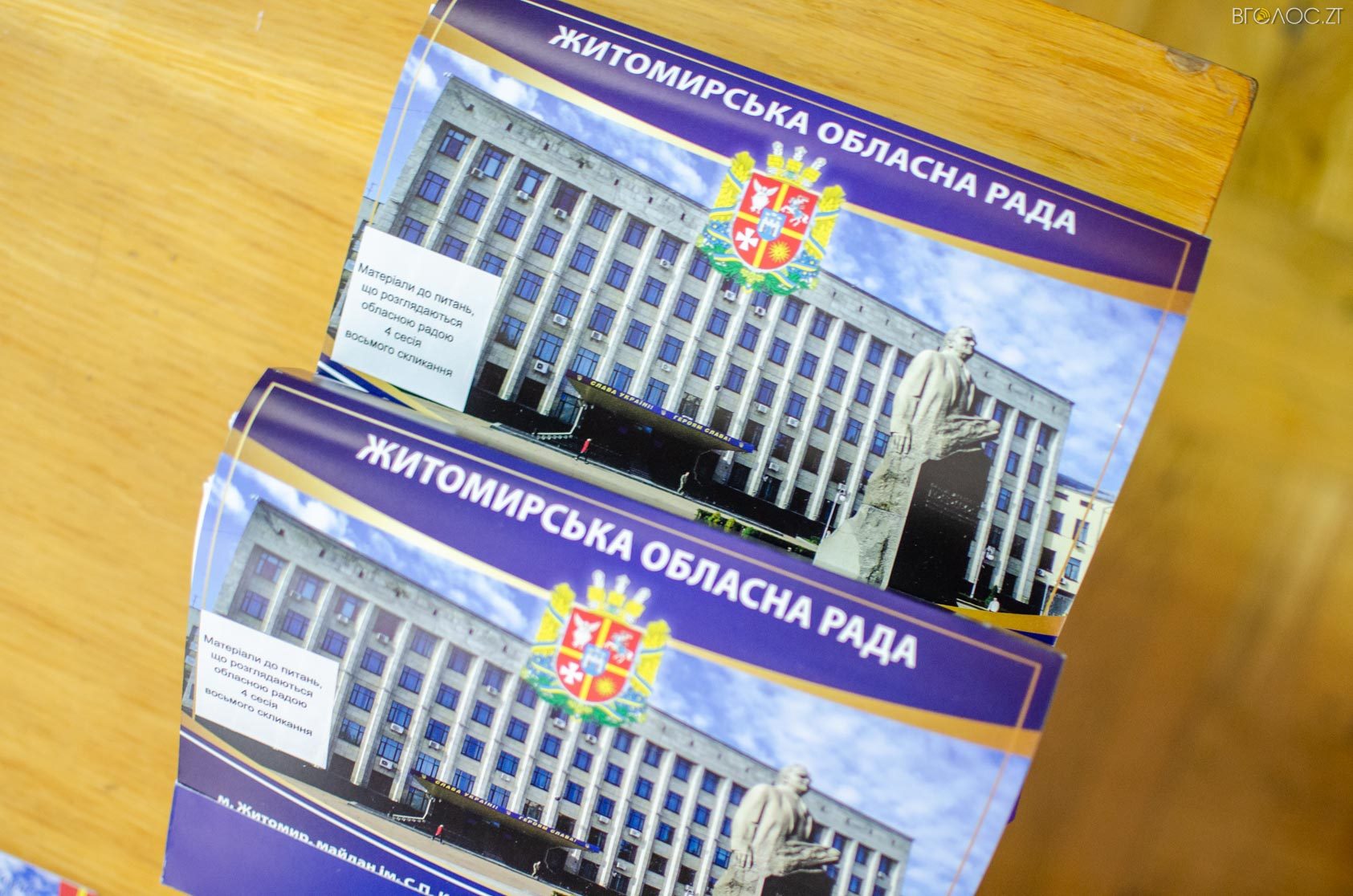 Чергова сесія Житомирської обласної ради 27 травня мала у порядку денному понад 120 питань. Серед них продовження контрактів із керівниками комунальних підприємств та установ, ряд звернень до Кабміну, Верховної Ради та Президента України. Як проходила сесія, бачив наш фотокореспондент Дмитро Савченко.