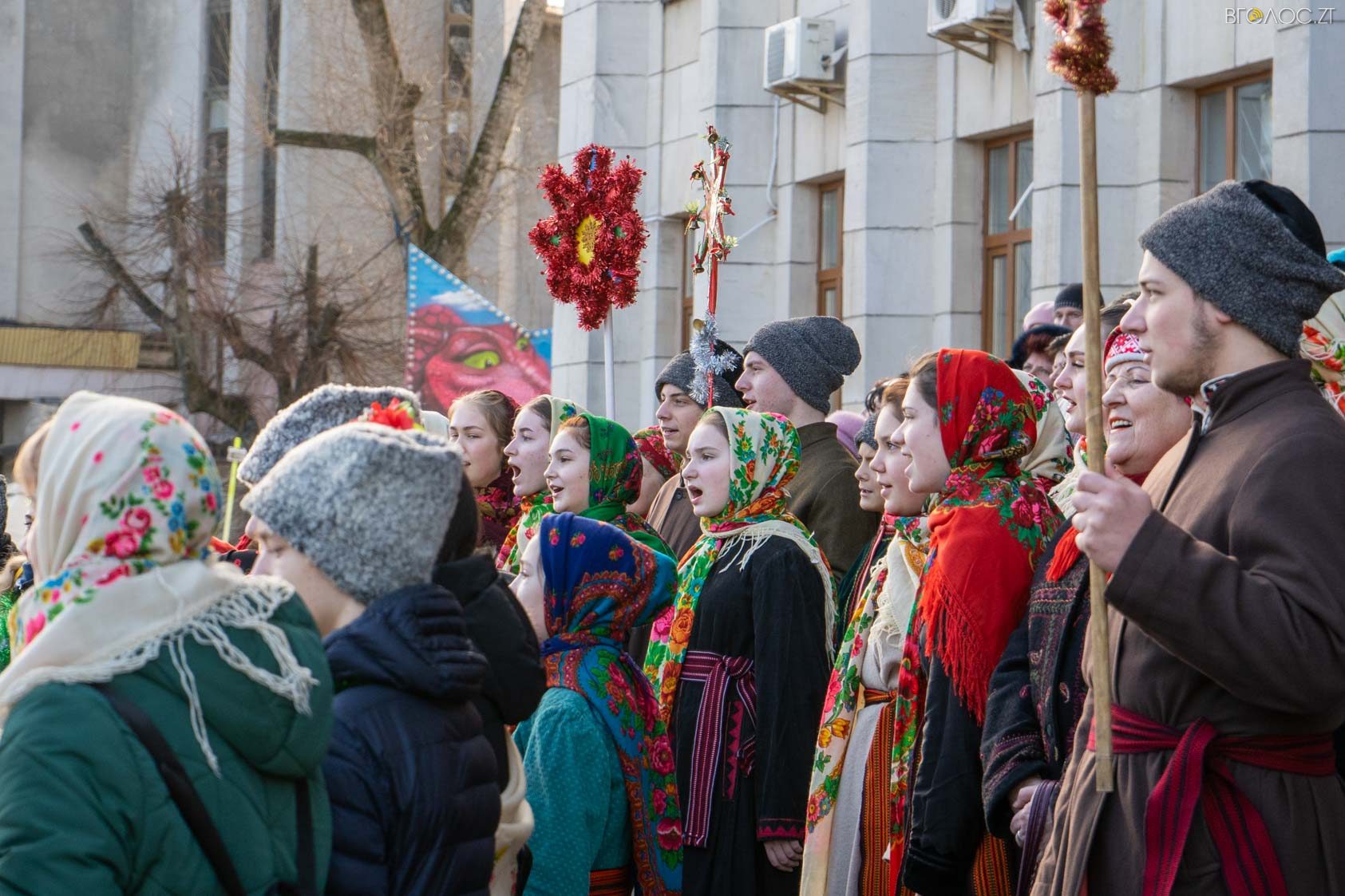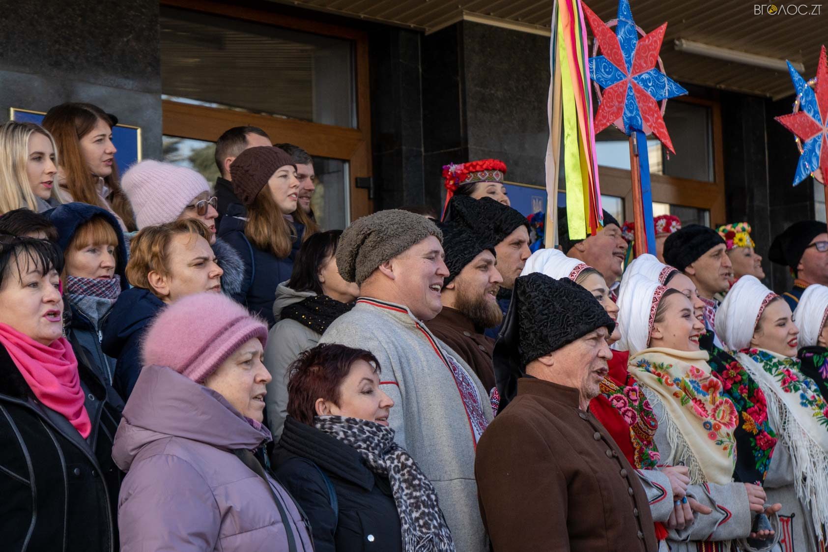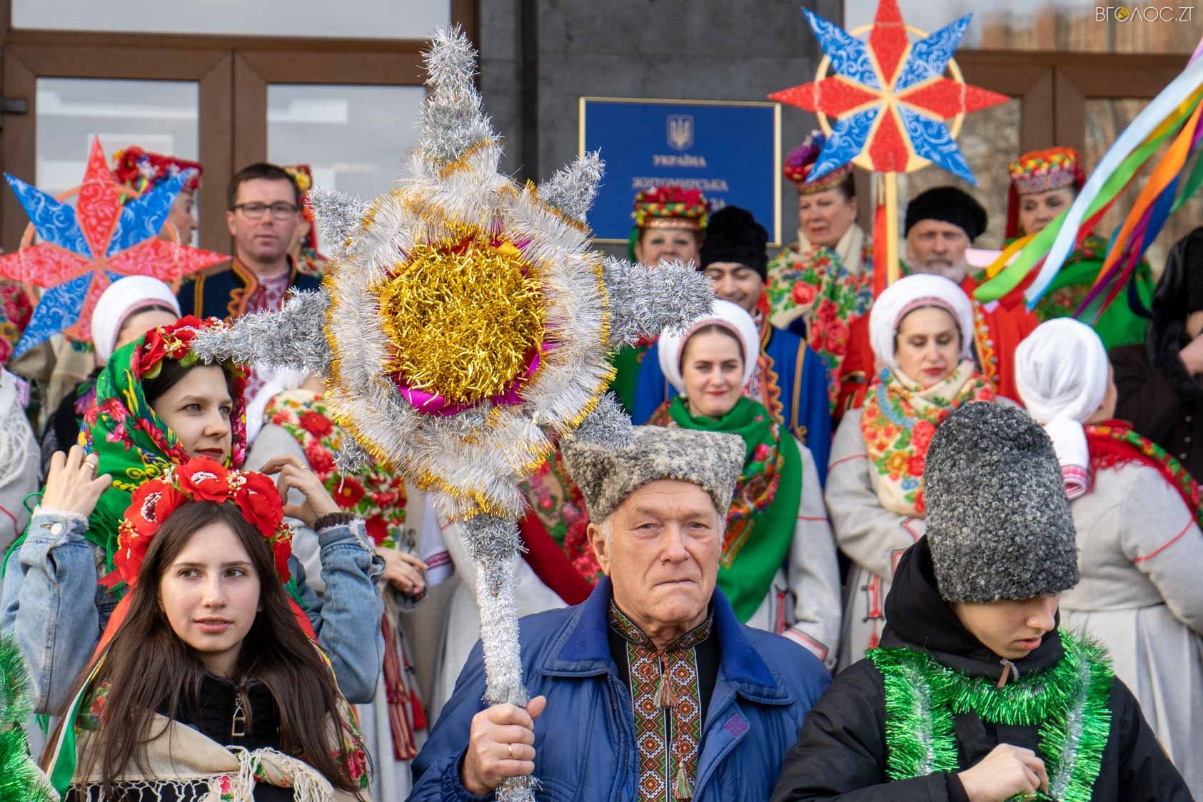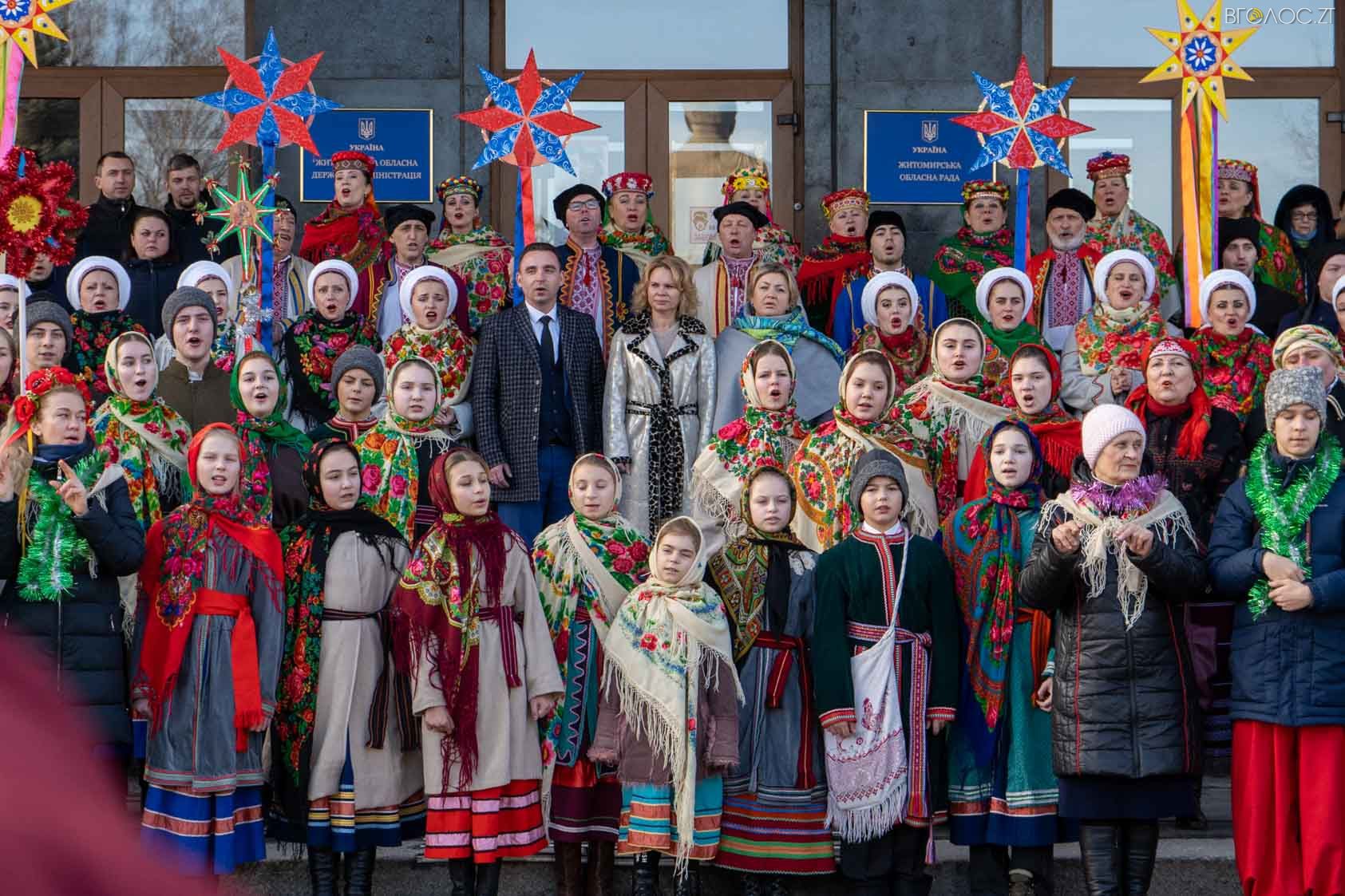 Близько сотні житомирян 5 січня під стінами Житомирської облдержадміністрації заспівали колядку «Нова радість стала». Участь у заході взяли Поліський академічний ансамбль пісні і танцю «Льонок» ім. Івана Сльоти, «Фольклорний ансамбль національного обряду «Родослав», зразковий фольклорний гурт «Джерельце», мистецьких шкіл та всі охочі житомиряни і гості міста. Детальніше у фоторепортажі нашого кореспондента Дмитра Савченка.