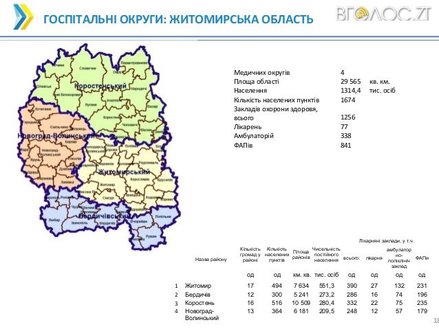 За проектом постанови на Житомирщині має бути створено 4 госпітальні округи.