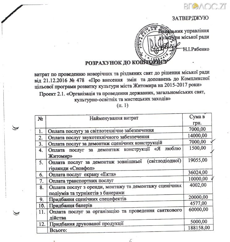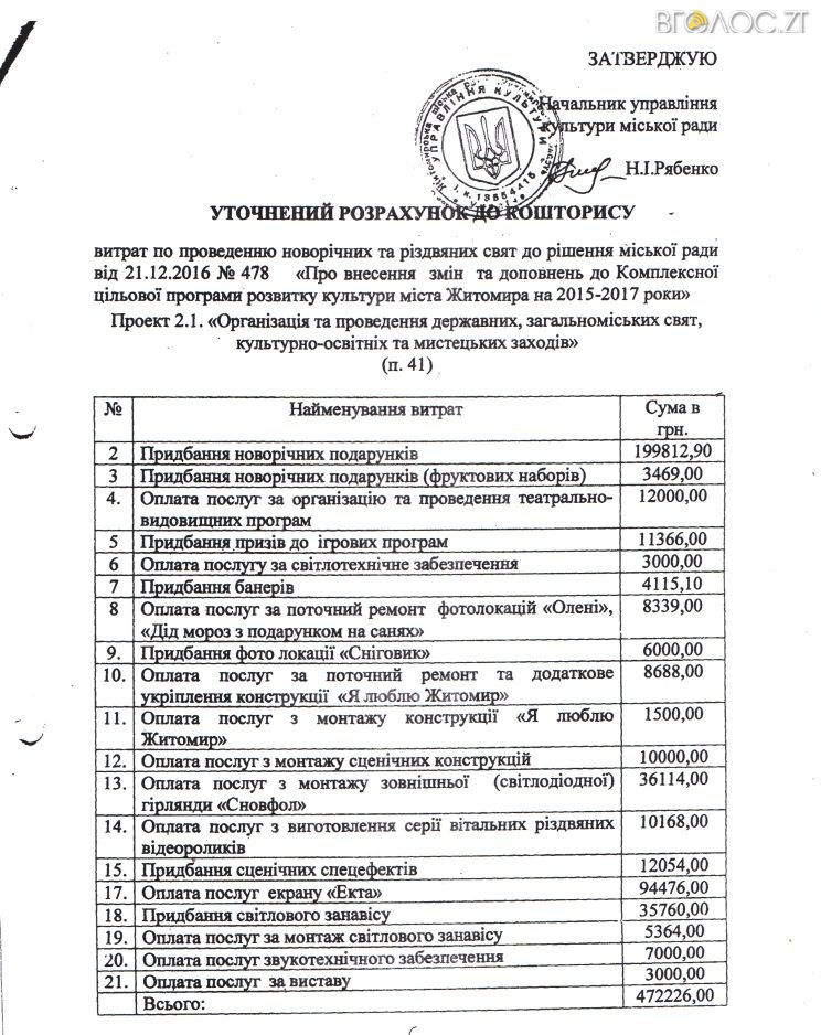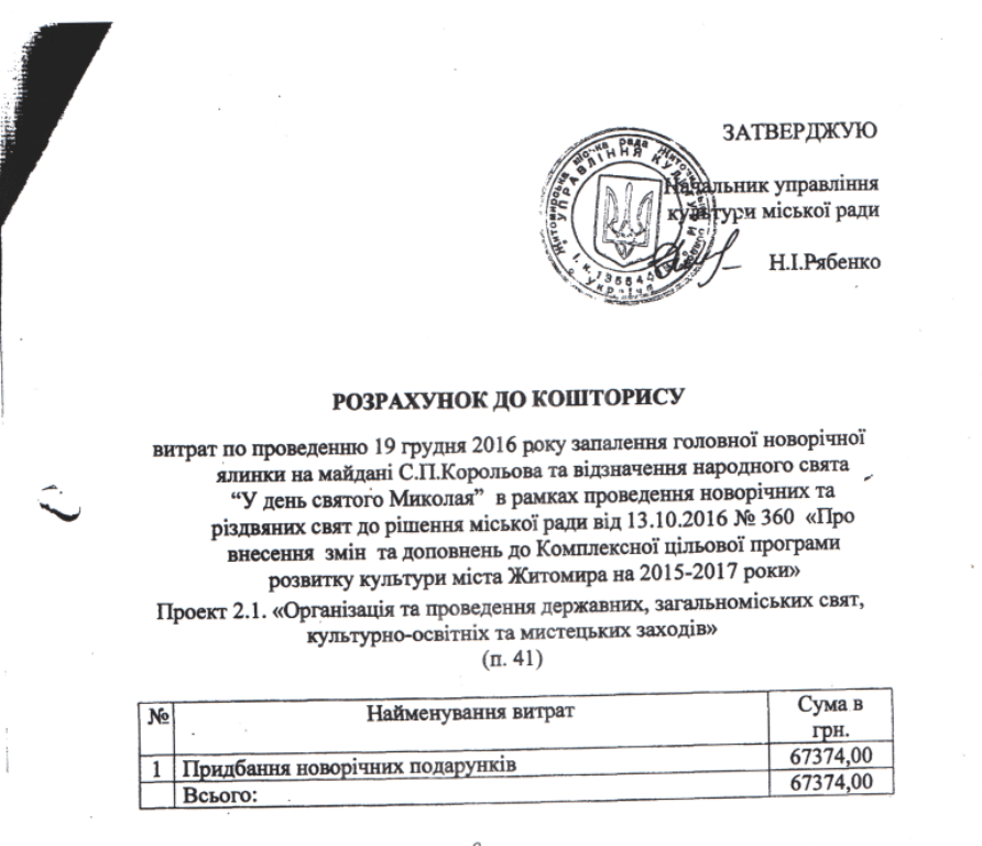 Стало відомо, скільки коштів житомирська мерія витратила на новорічні свята (ПЕРЕЛІК ВИТРАТ)