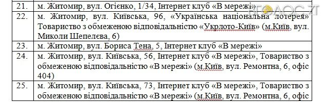 «Дані заклади позиціонують себе як розповсюджувачі державних лотерей. Проте у правилах гри «Супер Лото», «Кєно», «Лото Максима», «Секунда удачі» та «Лото-трійка», що містяться на офіційному сайті Національної лотереї, зазначено, що ставки приймаються щодня з 07:30 години до 21:00 години, у вихідні – з 9:00 години. Окрім цього, зазначені заклади навіть не містяться в переліку точок, де можна отримати виграш понад 500 гривень, що також ставить під сумнів відповідність задекларованої діяльності фактичній. Встановлення цілодобового режиму роботи є необгрунтованим», – сказав директор юридичного департаменту Євгеній Черниш.