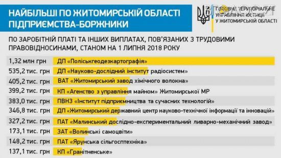 У рамках проведення кампанії з примусового стягнення заборгованості з виплати заробітної плати управління юстиції створило антирейтинг найбільших у Житомирській області підприємств-боржників по заробітній платі та інших виплатах, пов’язаних з трудовими правовідносинами.