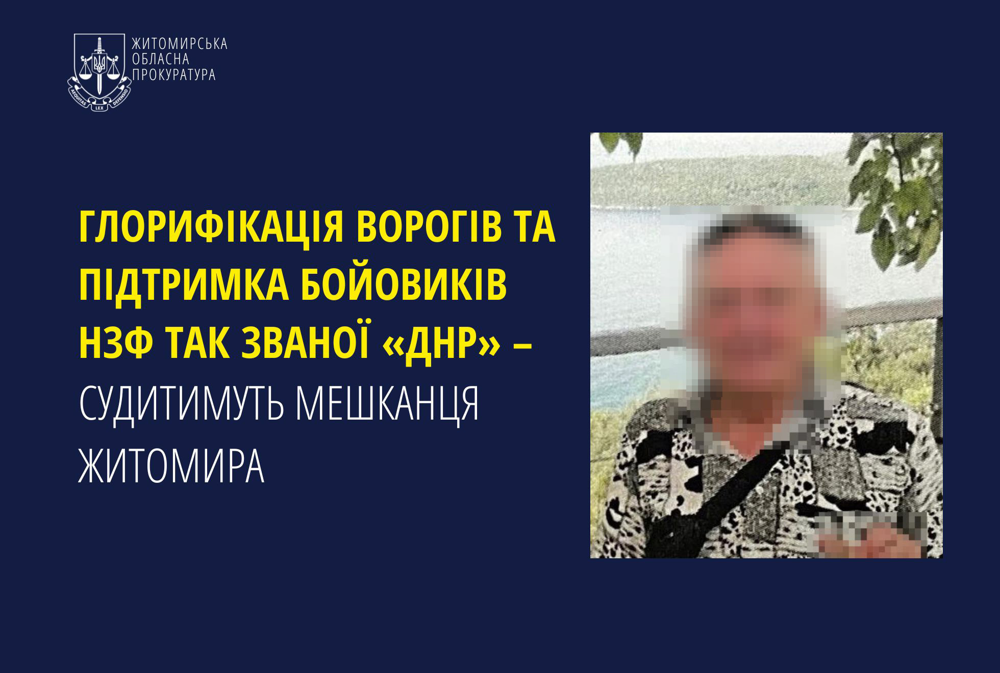 Житомирянина судитимуть за поширення матеріалів з виправдовуванням збройної агресії рф проти України та глорифікації осіб, які безпосередньо її здійснювали. Про це повідомили у прокуратурі області.