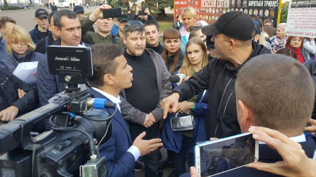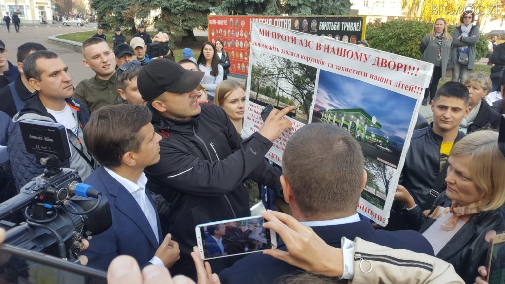 Міський голова Житомира Сергій Сухомлин залишив зустріч із житомирянами, які протестують проти будівництва АЗС на проспекті Незалежності під крики «Ганьба!».