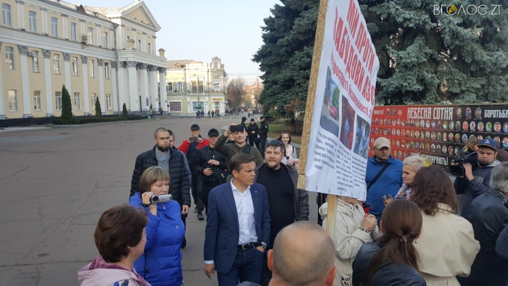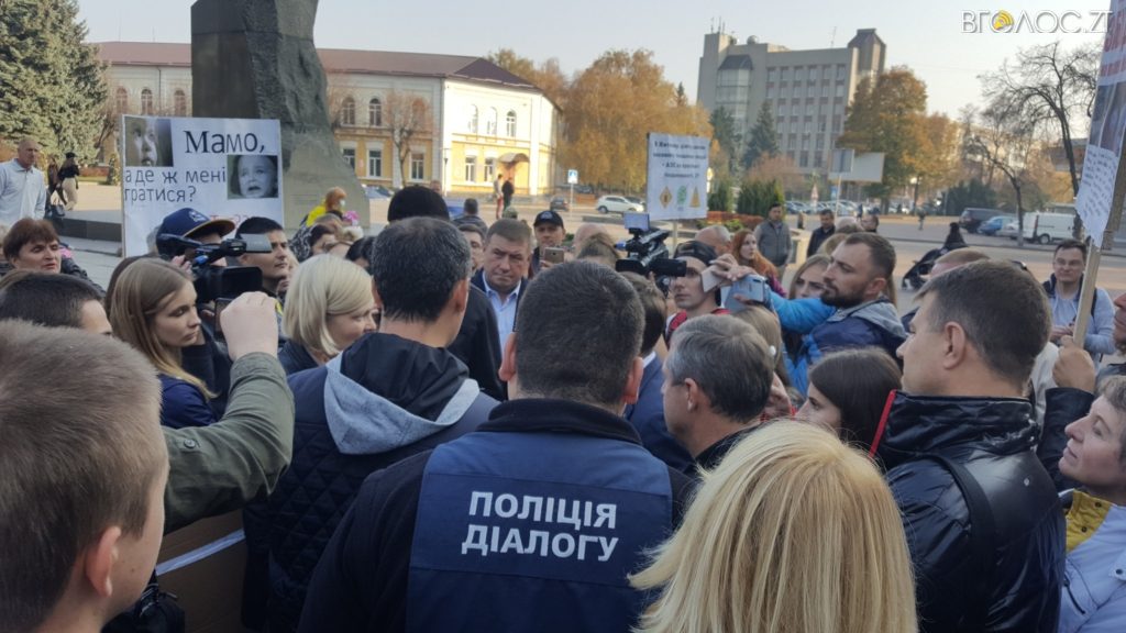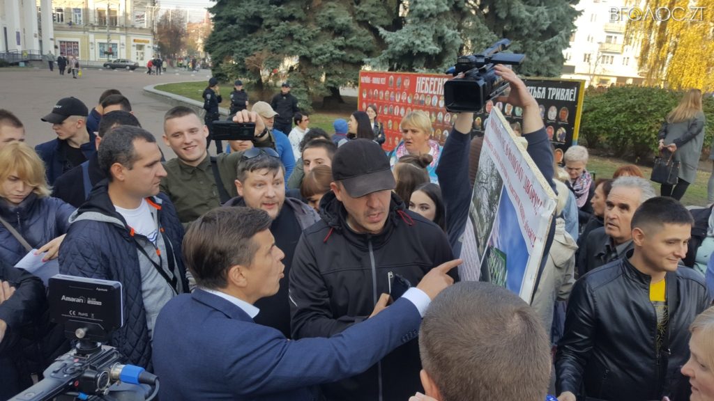 У той час, як житомиряни пікетували облдержадміністрацію, Сухомлин брав участь у засіданні постійної депутатської комісії. Учасники акції прийшли просто на засідання і «запросили» мера на зустріч із містянами. До того з ними вже встиг зустрітися голова облдержадміністрації Віталій Бунечко.