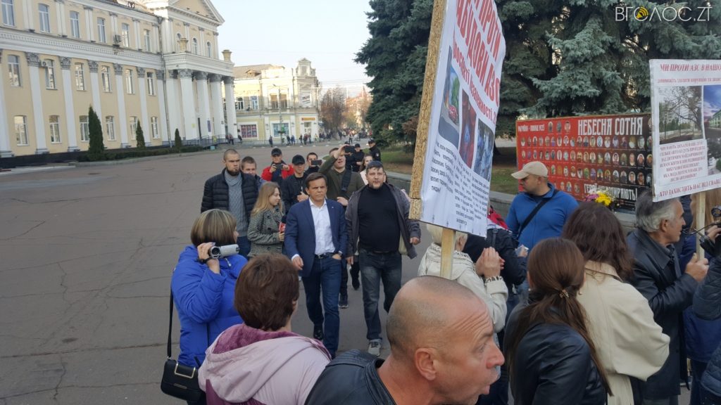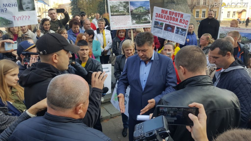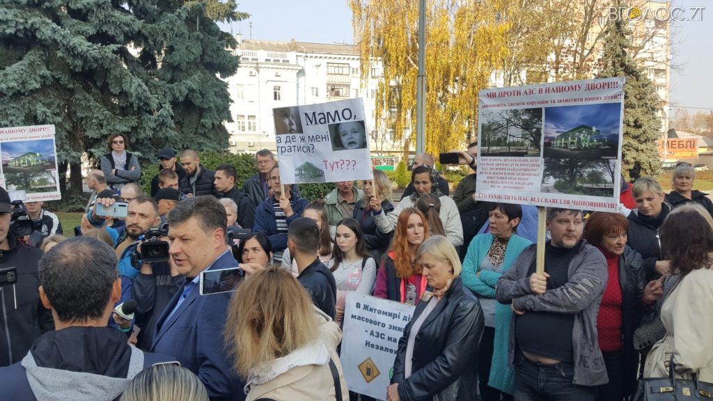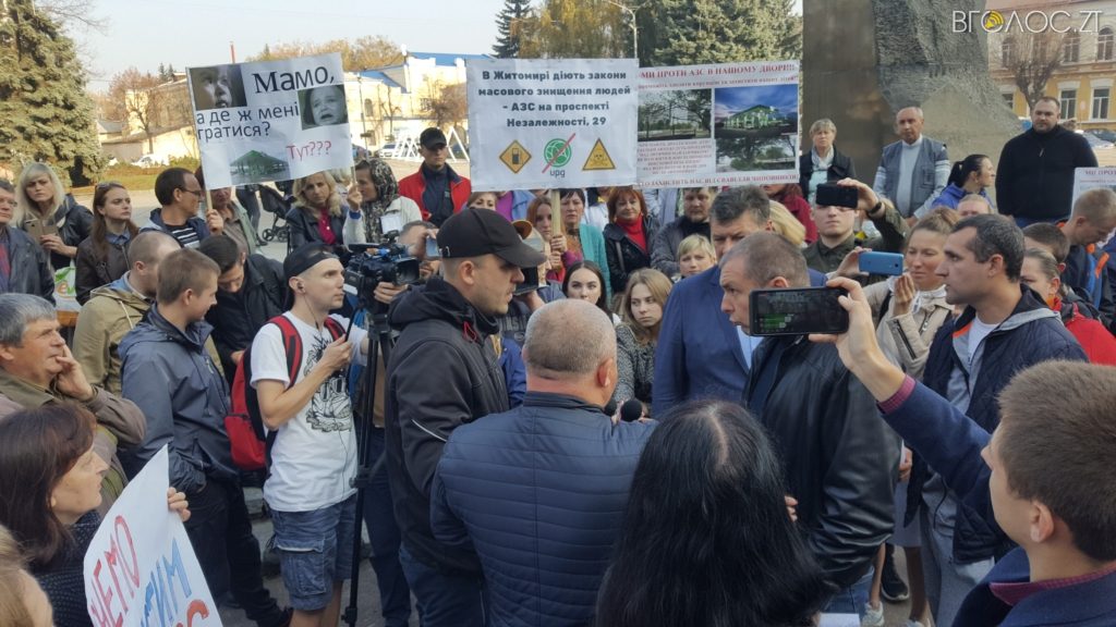 Міський голова сказав, що наразі створена робоча група. Висновки щодо законності чи незаконності будівництва АЗС на проспекті Незалежності вона має надати наступного тижня. Житомирян така відповідь не задовольнила. Вони провели мера під вигуки «Ганьба!».