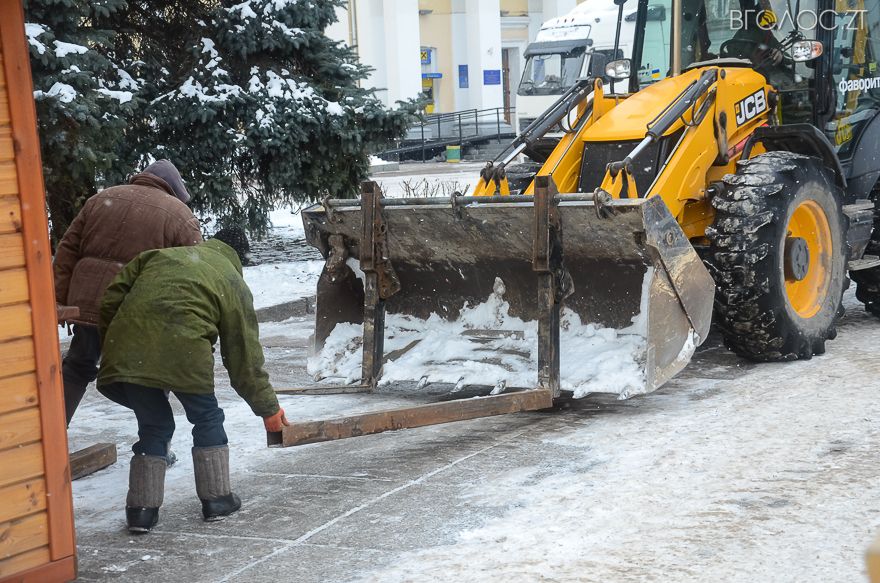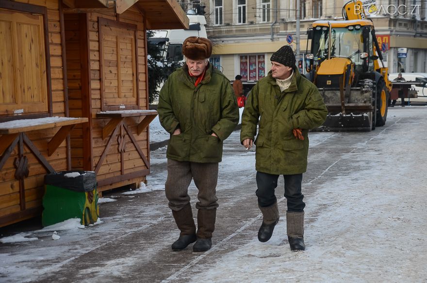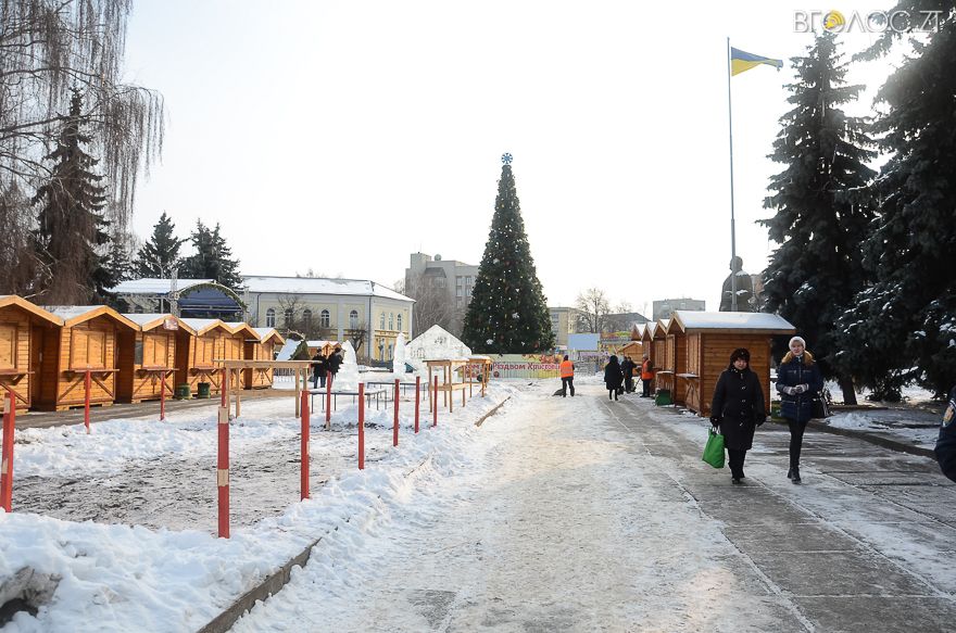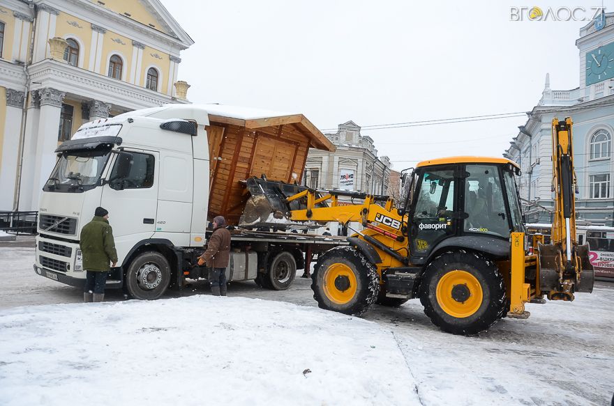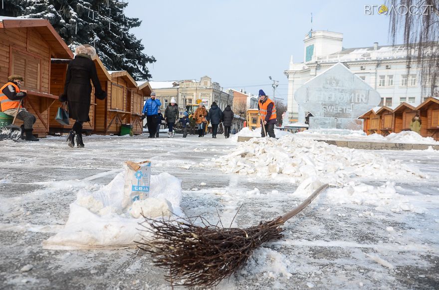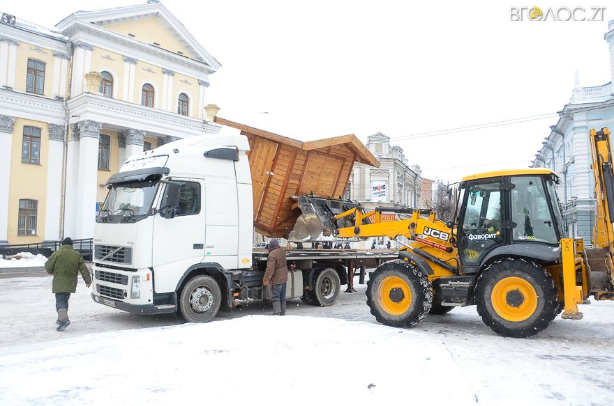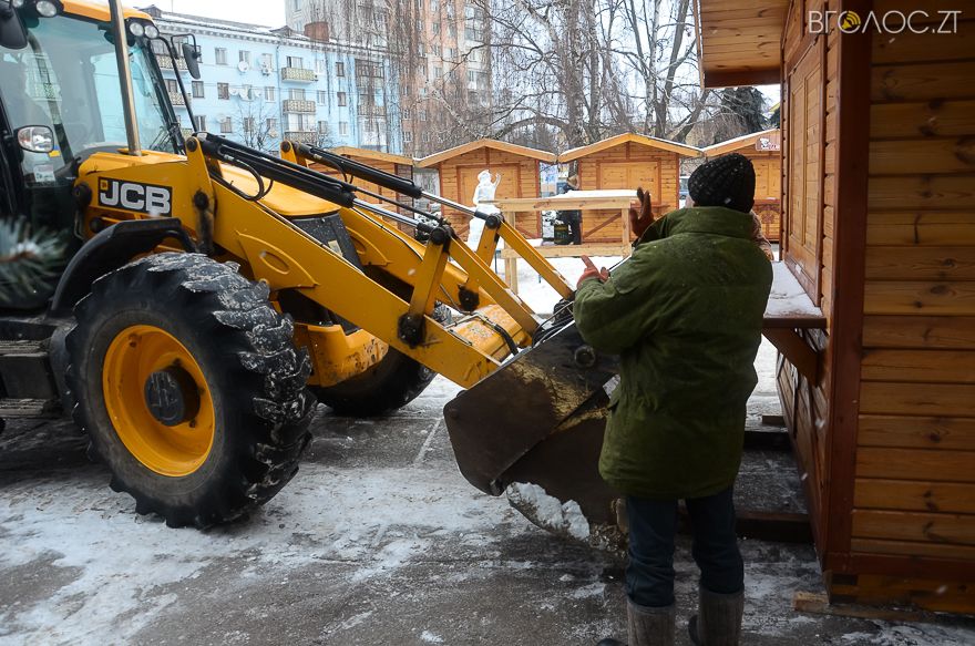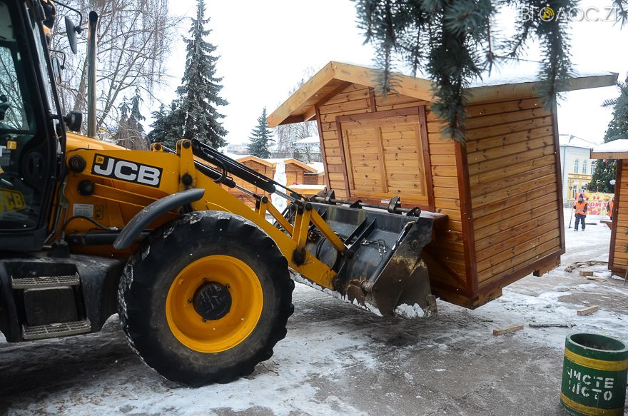 У Житомирі 21 січня почали розбирати новорічний ярмарок. Робочі працюють з самого ранку. Вже розібрали частину атракціонів та демонтували декілька кіосків. Робочі кажуть, що мають впоратись до вечора, бо завтра – День Соборності, і майдан має бути підготованим. Житомиряни ж приходять до ялинки зробити кілька фото наостанок.