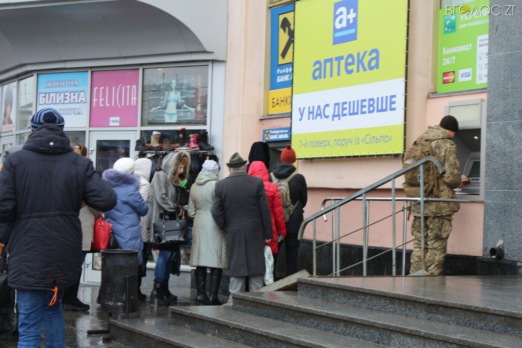 Житомирські клієнти ПриватБанку продовжують займати черги біля банкоматів (ФОТО)