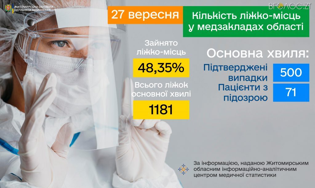 У лікарнях області пацієнтами з COVID-19 заповнена майже половина наявних ліжок