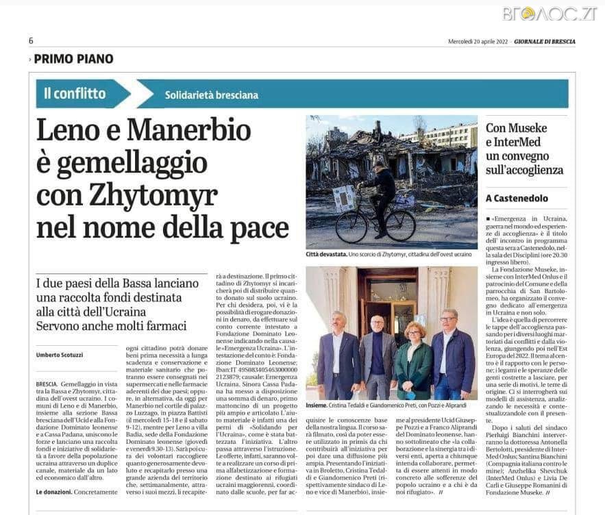 В Італії почали збирати гуманітарну допомогу для Житомира