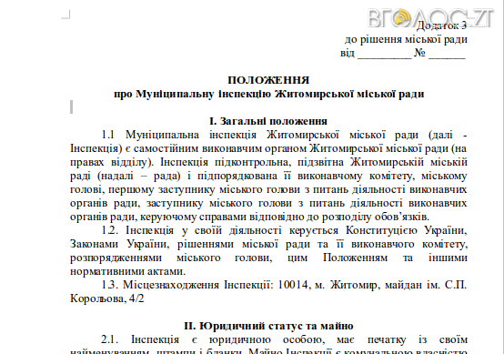 Редакція отримала у розпорядження положення про муніципальну інспекцію.