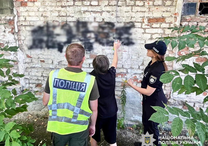 У Звягелі поліцейські і молодь ліквідували графіті з рекламою наркотиків