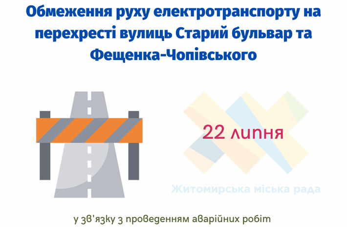 У Житомирі 1 травня буде обмежено рух транспорту по вулиці Бориса Тена