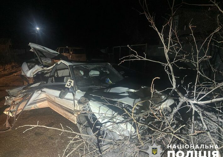 Авто зіткнулося з деревом та припаркованим мікроавтобусом.