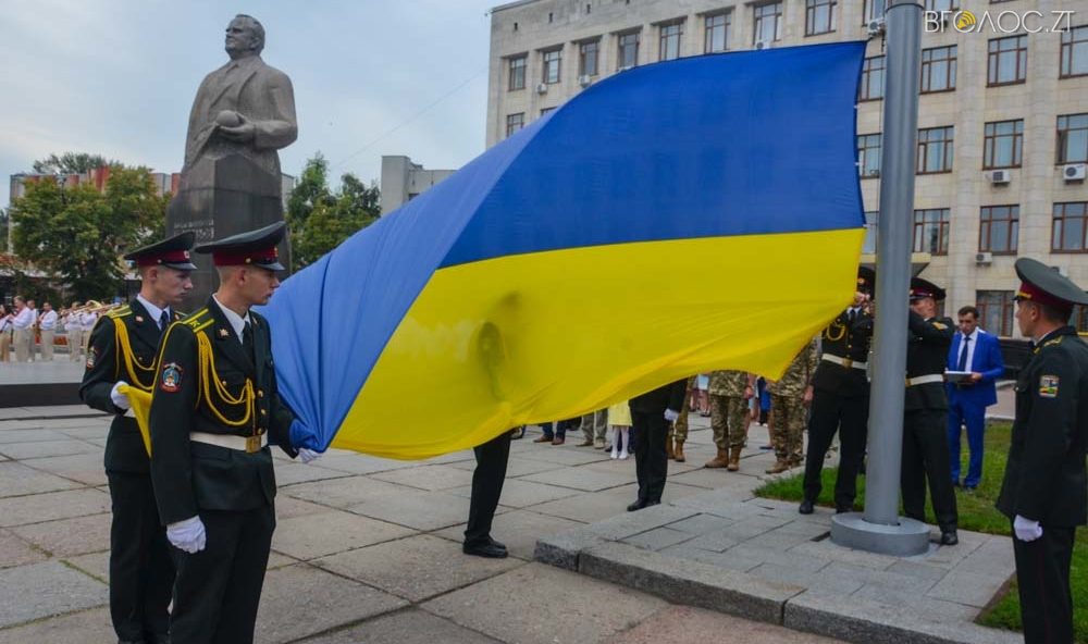 На майдані імені Корольова урочисто підняли Державний Прапор України (ФОТО)