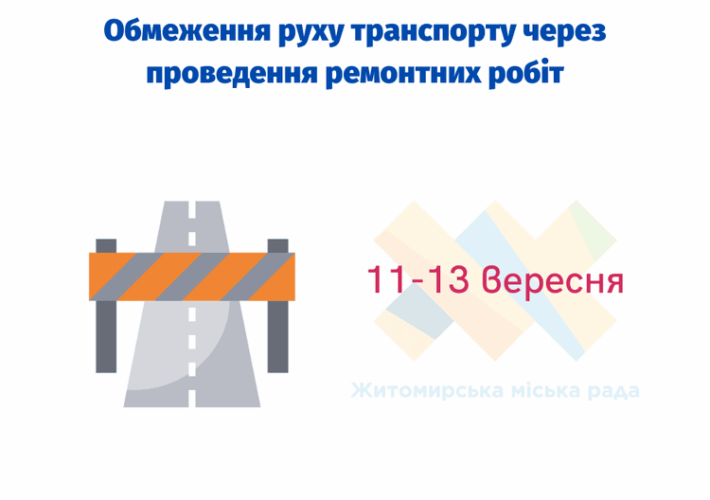 У Житомирі з 11 по 13 вересня обмежать рух у центрі міста