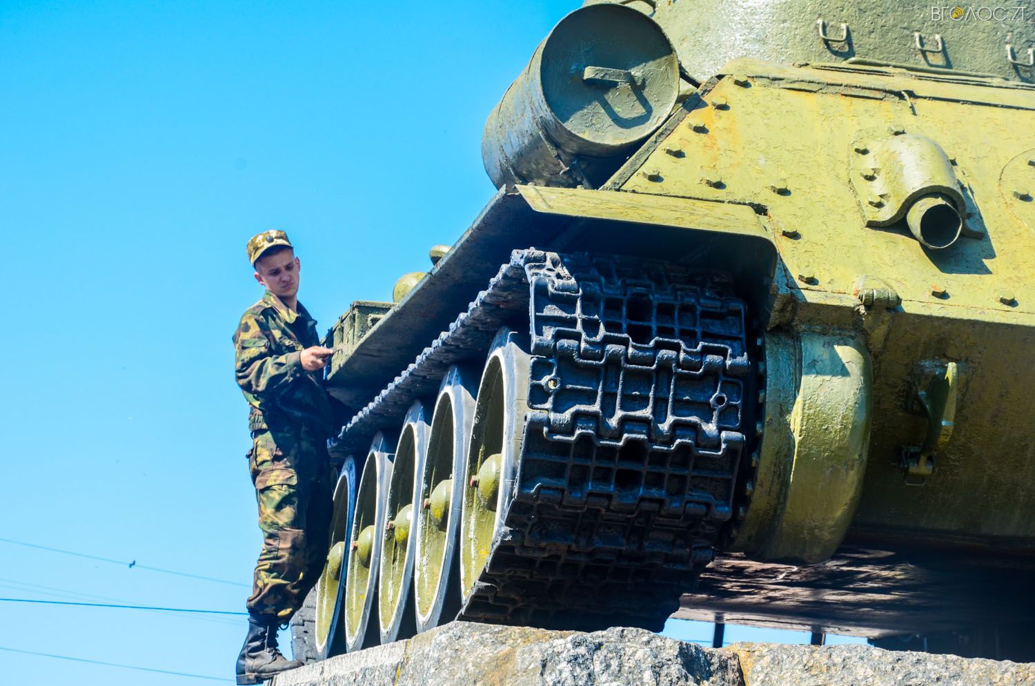Суспільство Фоторепортаж На майдані Перемоги військові почали мити та фарбувати танк (ФОТО) Оксана Шульга 5 Травня, 2016 0 Майдан прикрашатиме пофарбований «Т-34».