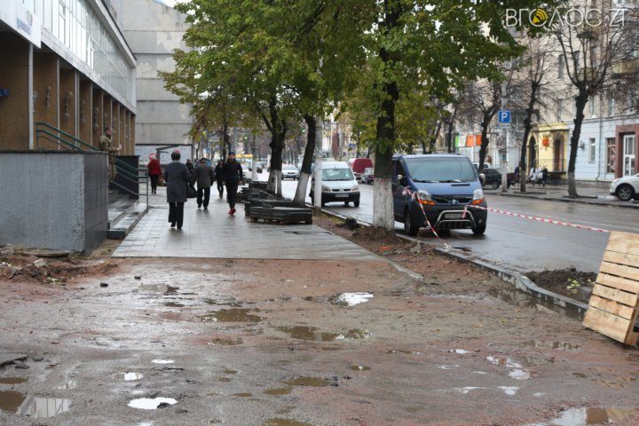 Через розриті тротуари на Київській житомиряни місять ногами багнюку
