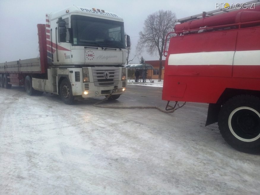 Дві вантажівки у Коростишівському районі через ожеледицю не могли піднятися дорогою вгору