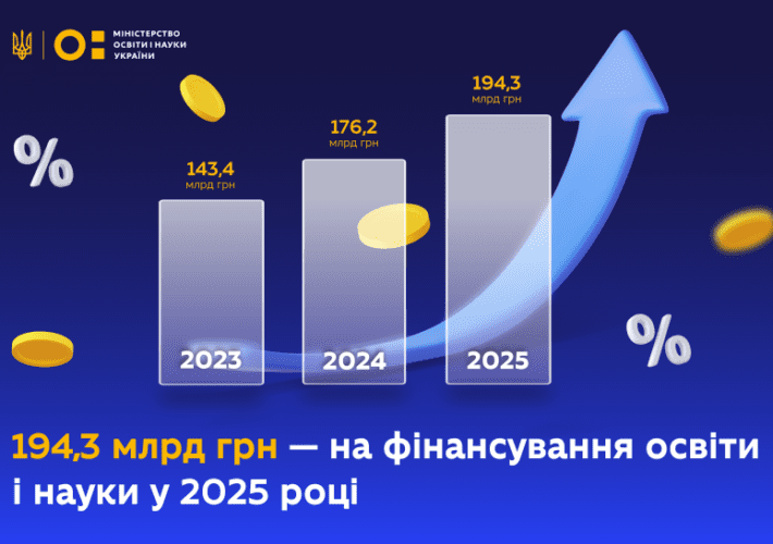 У бюджеті 2025 року Верховна Рада України передбачила на освіту 194,3 мільярди гривень. Про це повідомили у прес-службі Міністерства освіти та науки. «За останні два роки...
