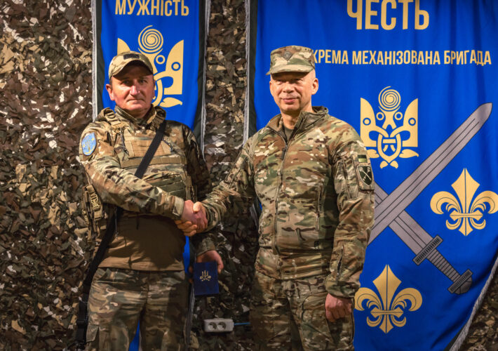 Головнокомандувач Збройних Сил України генерал Олександр Сирський нагородив військовослужбовця 155 окремої механізованої бригади Валерія Присяжнюка нагрудним знаком «Золотий Хрест»