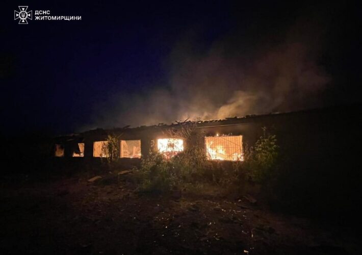 Під час нічної атаки дронів на Житомирщині пошкодили столярний цех