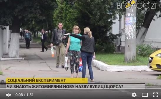 Експеримент: Чи знають житомиряни нову назву вулиці Щорса? (ВІДЕО)