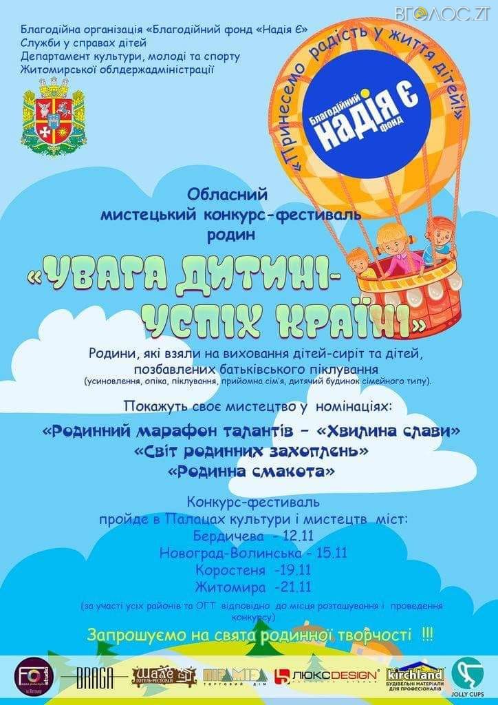 На Житомирщині відбудеться обласний мистецький конкурс-фестиваль родин «Увага дитині-успіх країні»
