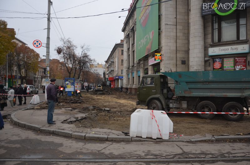 Наразі демонтують асфальтне покриття біля ЦУМу.