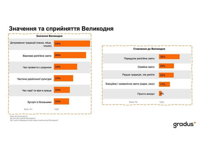 Лише 44% українців сприймають Великдень передусім як релігійне свято — дослідження Gradus Research