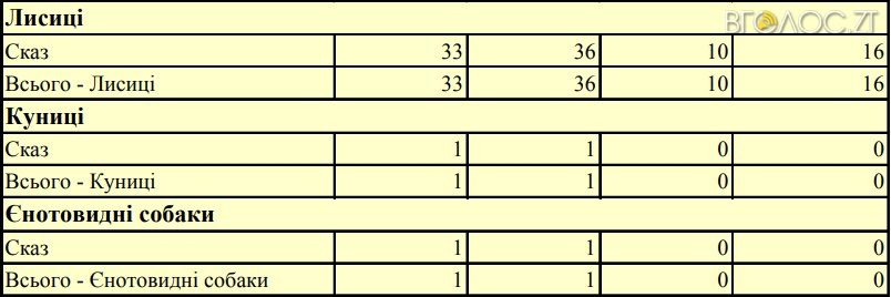 В області у минулому році зареєстрували 64 випадки захворювання на сказ серед тварин. Зокрема, захворіли 36 лисиць, 13 собак, 9 котів, 4 великі рогаті худоби, одна куниця та одна єнотовидна собака. З них загинули 29 тварин. Про це повідомили у Головному управлінні Держпродспоживслужби у Житомирській області.