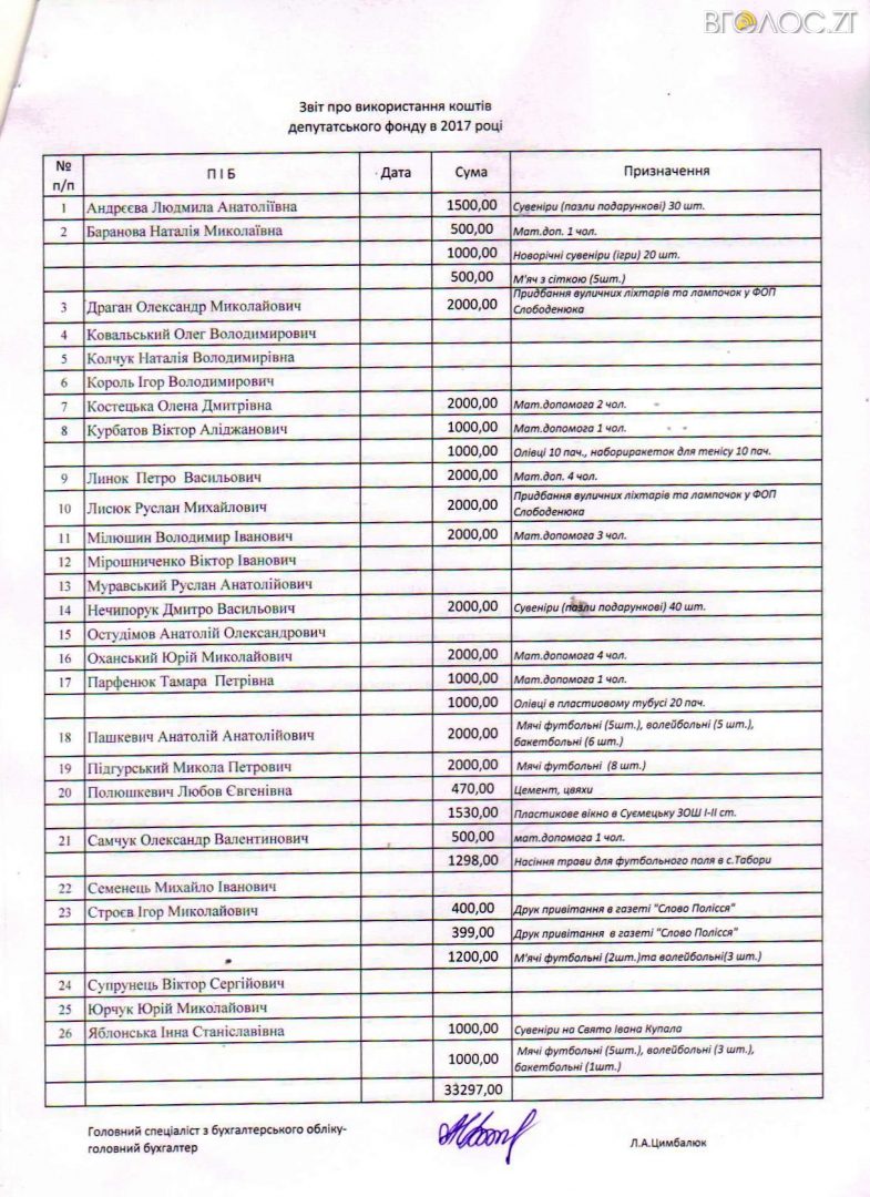 Депутати Баранівської міської ради на забезпечення потреб виборців у минулому році витратили понад 33 тис. грн. Хоча, відповідно до рішення міської ради, на дані потреби передбачили 52 тис. грн. Про це “Вголос.zt” у відповіді на інформаційний запит повідомив заступник міського голови Василь Савчук.