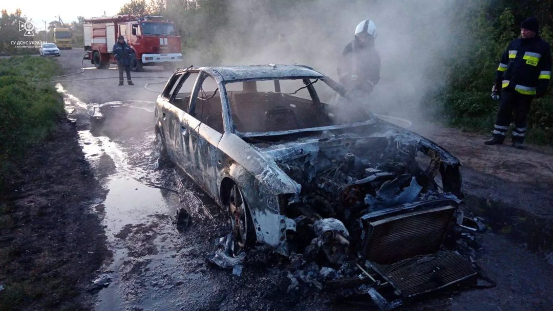 Про те, що у селі Дивин Брусилівської громади Житомирського району горить автомобіль «Ауді» рятувальникам повідомили 11 травня о 04:17.