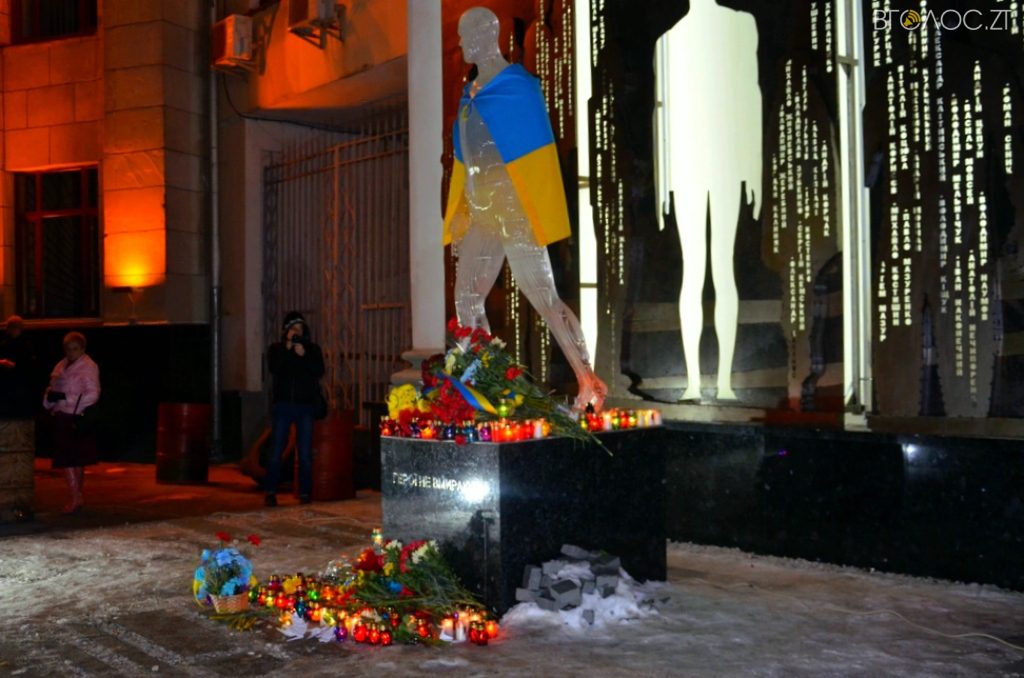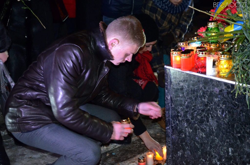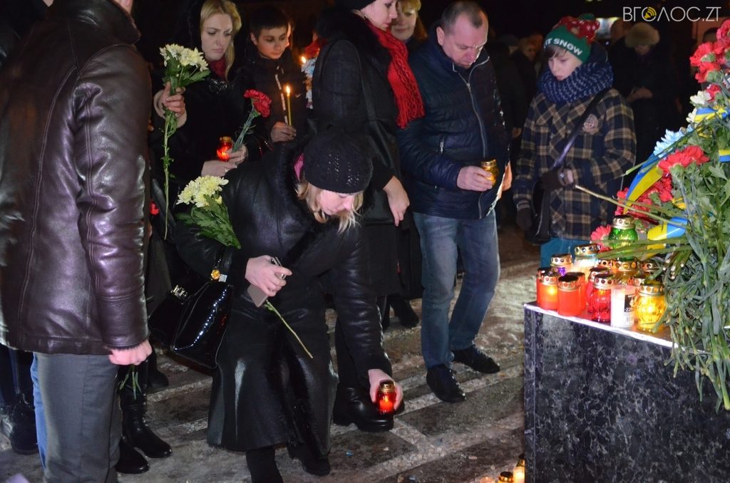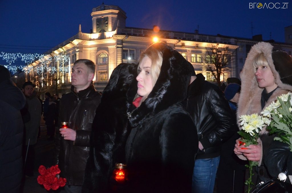На майдан імені С.П. Корольова біля пам’ятного знаку Героям Небесної Сотні зібралися сотні житомирян, щоб віддати належну шану патріотизму і мужності тим, хто чотири роки тому відстояв національні інтереси, демократичні цінності і європейський вибір нашої держави.