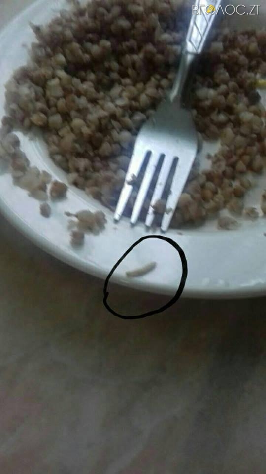 У гречці, яку подали під час обіду в Житомирській міській гімназії ім Я. Домбровського №36, діти знайшли черв’яка. Про це написала місцева жителька Оксана Клюс у Facebook.