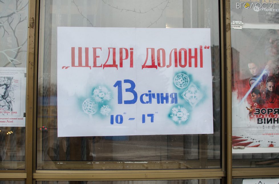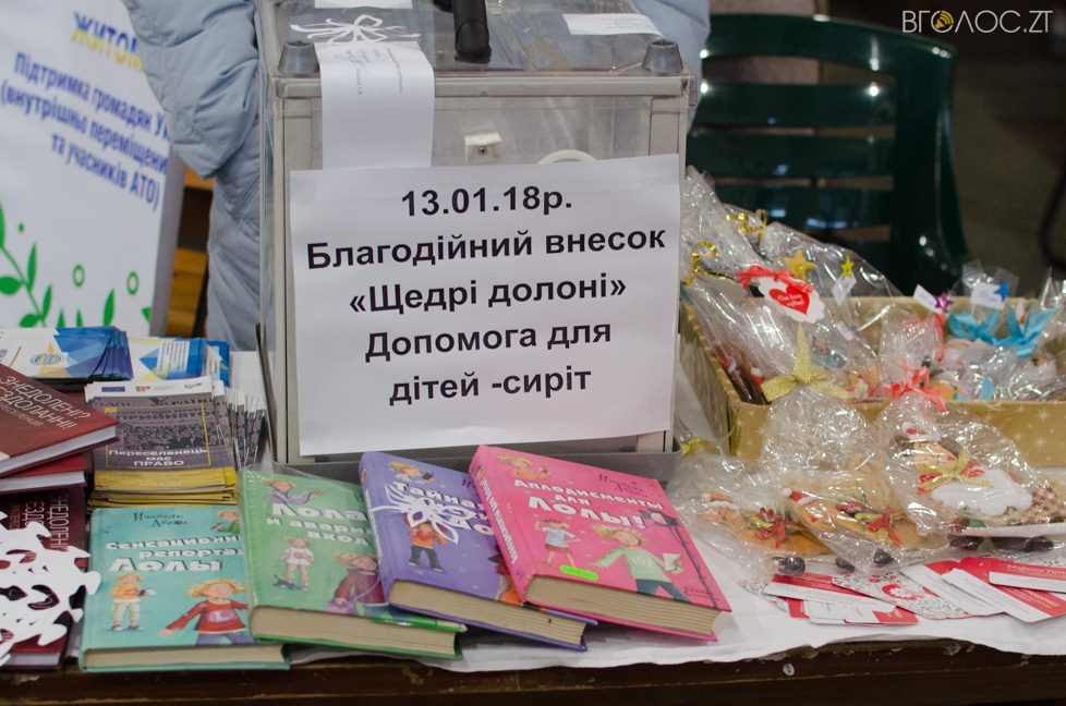 В приміщенні кінотеатру “Жовтень” 13 січня відбувся благодійний ярмарок «Щедрі долоні». Кожен, хто завітав на ярмарок, мав можливість придбати різноманітні смаколики, сувеніри до дня закоханих, біжутерію, прикраси для дівчаток, вироби ручної роботи, картини, іграшки. Крім того, за символічну суму – купити комісійні речі. Зібрані кошти будуть спрямовані на допомогу дітям-сиротам, які мають проблеми зі здоров’ям. Організатор заходу – громадська організація Союз переселенців «МИР НА ДОЛОНІ», а більшість учасників благодійного ярмарку – внутрішньо переміщені особи.