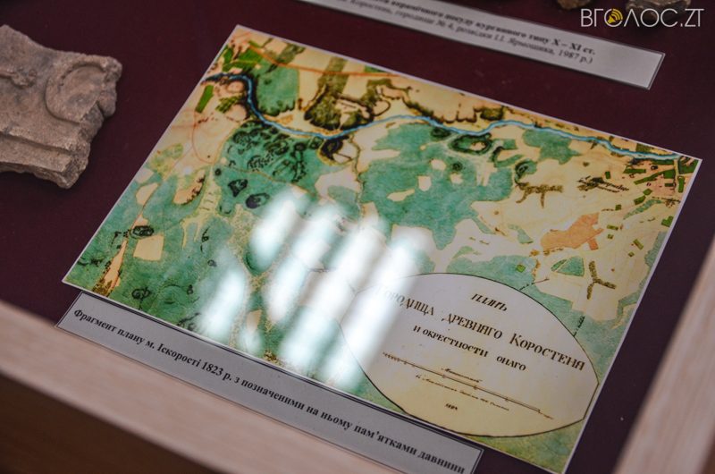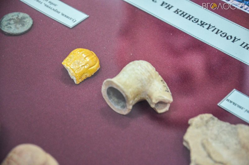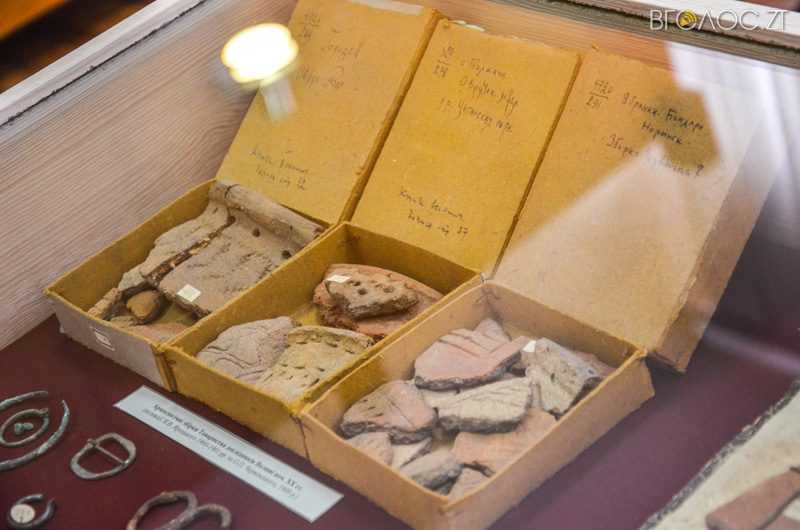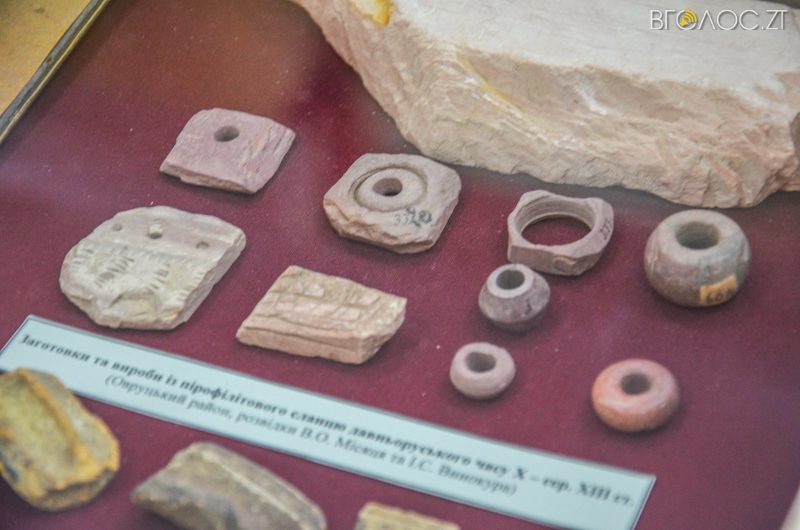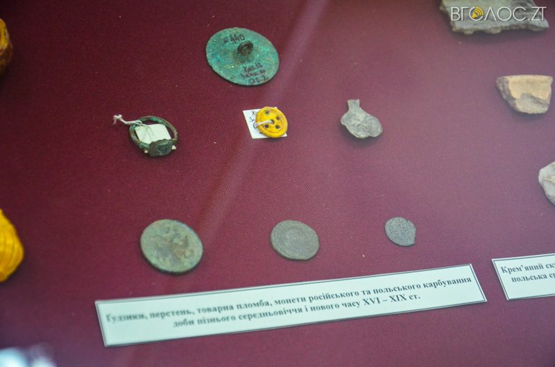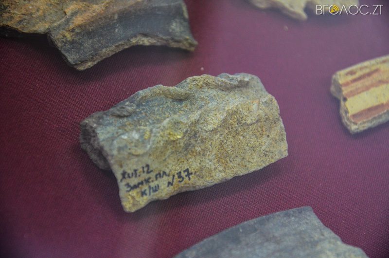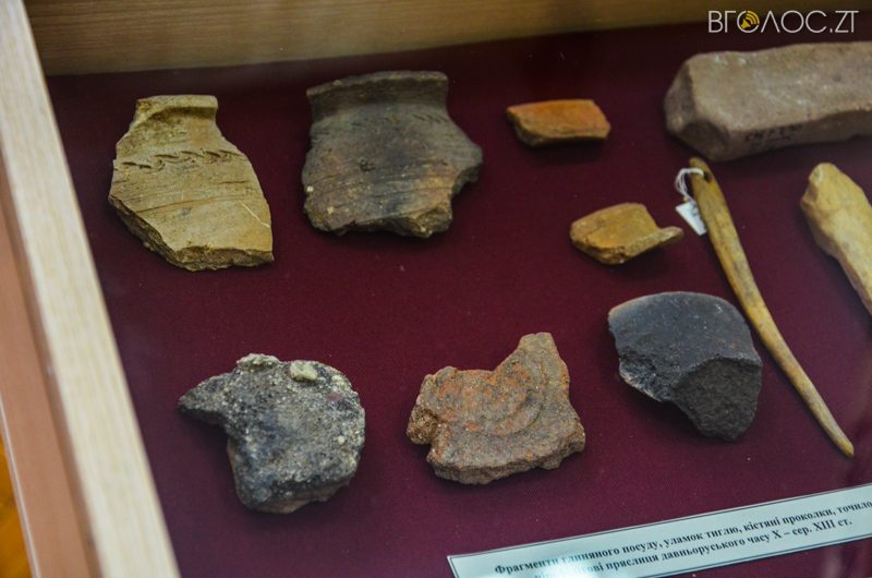 Серед представлених артефактів були й такі, які знайшли на під час досліджень Замкової гори. За словами старшого наукового співробітника музею Олександра Тарабукіна, вперше дослідження цієї частини Житомира провели на початку 80-х років. Також науковець попросив передавати до музею різні знахідки старовини.