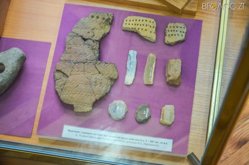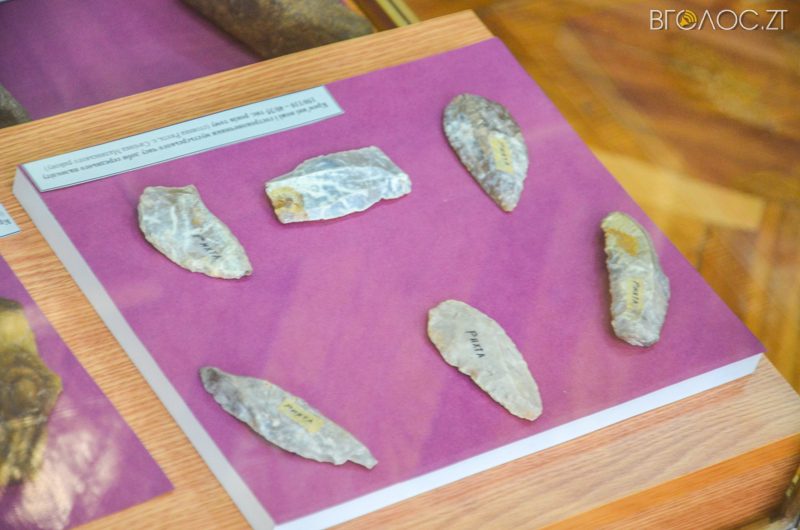«Представлені різні часові знахідки, які показують різноманітні культури, що жили на території нашої області. Самі артефакти зібрані не лише в Житомирі, але і в Овруцькому, Андрушівському районах. Крім того, частково представлені знахідки, які виявлені, під час закладання фундаменту майбутнього музею природи», – розповів Роман Насонов.