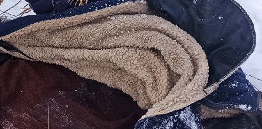 Був одягнутий у теплий спортивний костюм синього кольору: на штанах є тонкі поздовжні рожеві смуги, кофта – з внутрішньої сторони з білим штучним хутром; коричневий светр, сині шкарпетки та чорні спортивні туфлі.