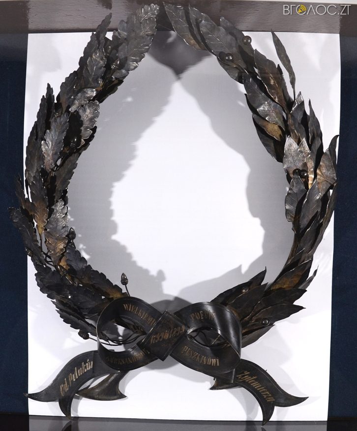 «На вінку зроблено напис польською мовою: «Великому поету Олександру Пушкіну від поляків Житомира». Цей унікальний художній та історичний раритет, якому вже 118 років, нині зберігається у фондах Житомирського краєзнавчого музею», – уточнили у музеї.