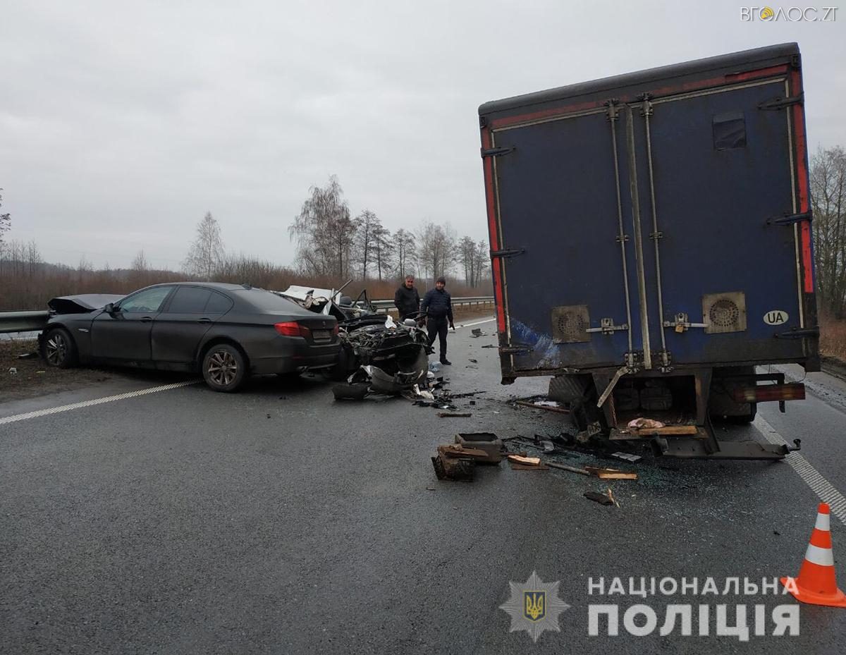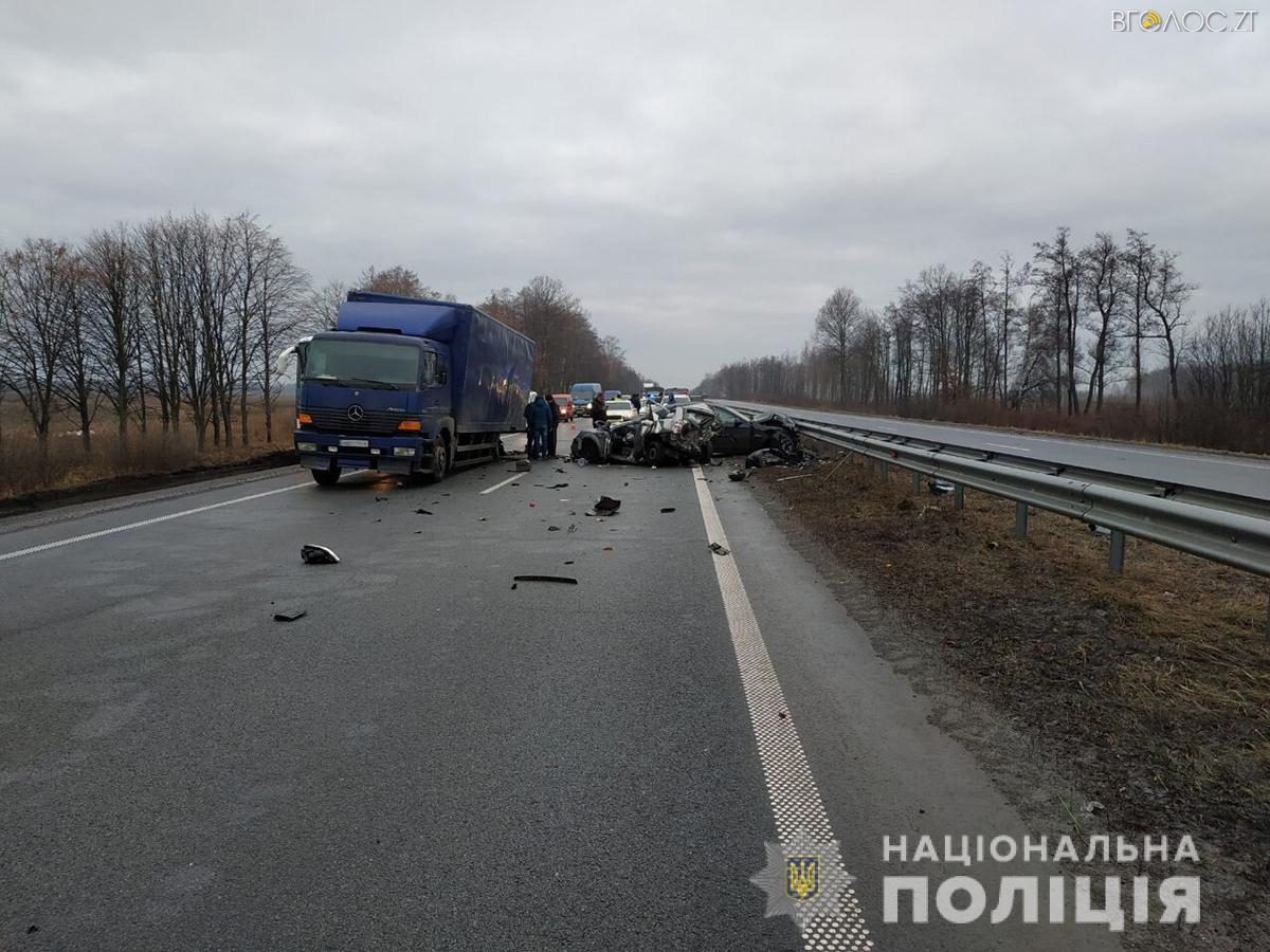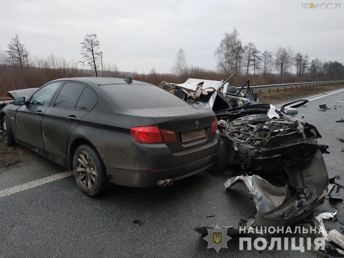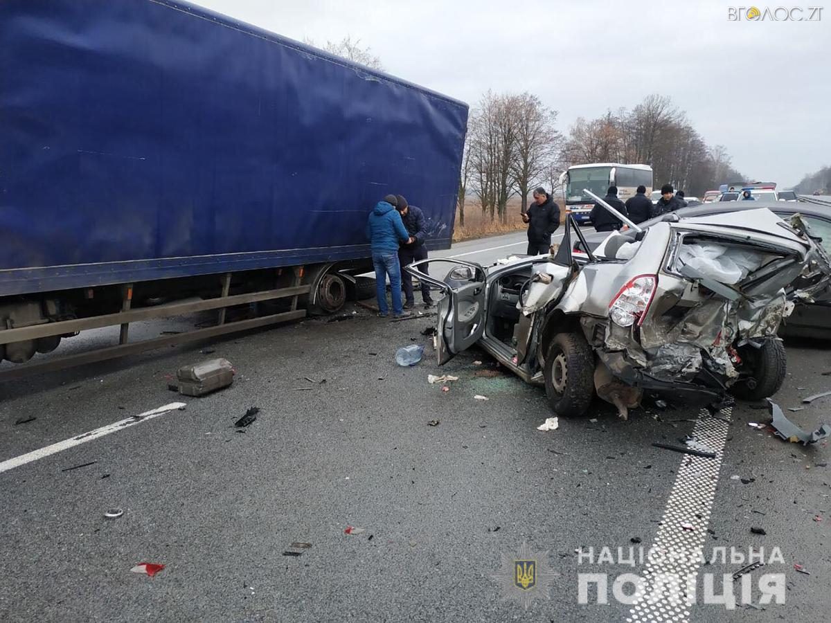 “Попередньо встановлено, що близько 04:40 на 201 км автошляху Київ-Чоп, водій автомобіля «Mercedes-Benz Atego 1823», 47-річний житель м. Дніпра, рухаючись у напрямку м. Києва, зупинився на узбіччі автошляху у зв’язку з поломкою. За деякий час водій автомобіля «Daewoo Nubira», 41-річний житель Тернопільської області, рухаючись у попутному напрямку, не впорався з керуванням та вчинив зіткнення з припаркованою вантажівкою. Після цього з легковиком здійснив зіткнення водій автомобіля «BMW 525», 41-річний житель Тернопільщини, який рухався позаду. Унаслідок ДТП водій «Daewoo» отримав тілесні ушкодження та був ушпиталений до реанімаційного відділення Новоград-Волинської лікарні”, – йдеться у повідомленні.