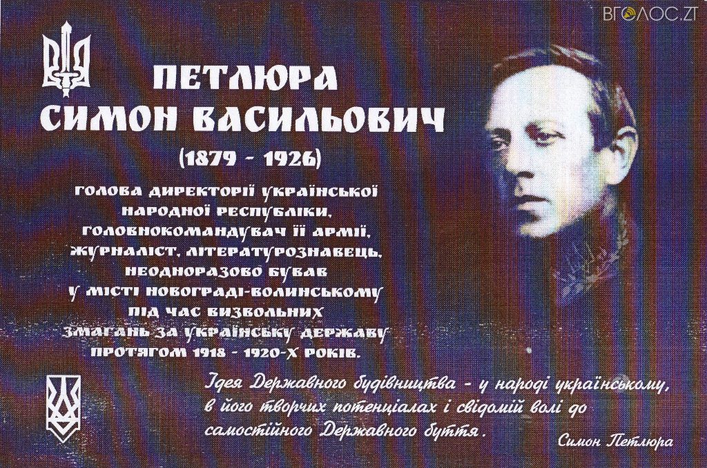 «Встановити меморіальну дошку на честь українського військового, громадського та політичного діяча Петлюри Симона Васильовича (1879-1926) на приміщенні залізничного вокзалу „Новоград-Волинський-1“ за рахунок спонсорських коштів», – йдеться у документі.