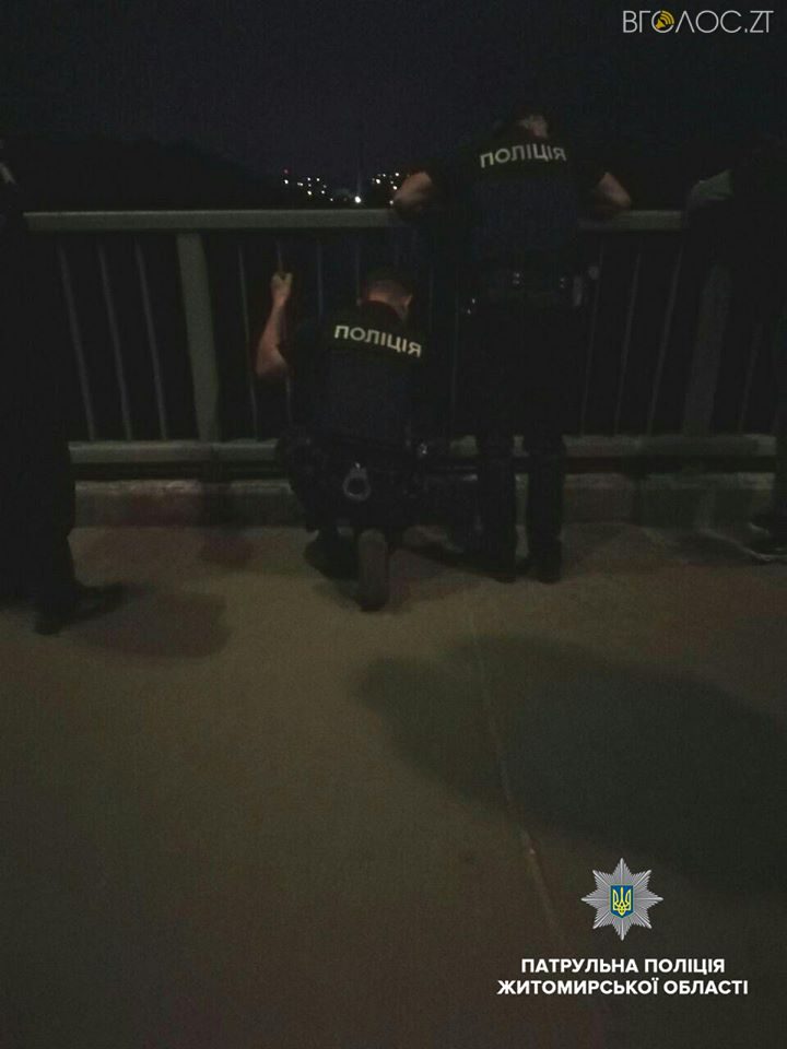 Миттєво прибувши на виклик, патрульні виявили громадянку, котра знаходилась за поручнями мосту, сил втриматись у дівчини не залишилось.