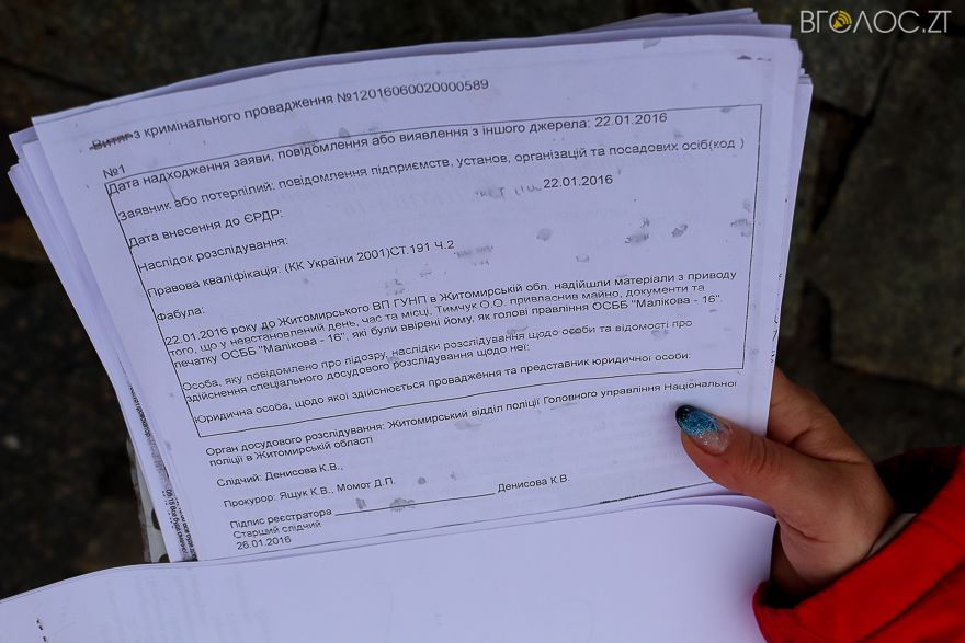 Зв’язатися з Олександром Тимчуком кореспондентам “Вголос.zt” не вдалося. Новообране правління “Малікова-16” стверджує, що у Житомирі його вже немає, а номер телефону відключений. Вони подали до міліції кілька заяв.